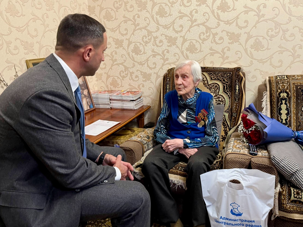 Чарада Башкарма комитет җитәкчесе Фәрид Салахов һәм Үзәк районы хакимияте башлыгы Фидәрис Хәбибуллин катнашты. Бөек Ватан сугышы ветераны Надежда Мищенко үзенең бер гасырлык юбилеен билгеләп үтә.