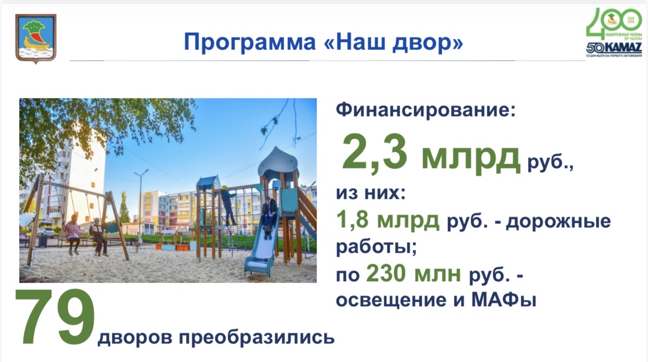 Шактый акчалар юл инфраструктурасына инвестицияләнде. Капиталь ремонт Боровец күперенә, Яшьлек проспектына, шулай ук Машина төзелеше, Магистральная, Орловская һәм Маршал Жуков урамнарына кагылды.