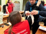 Вместе с пенсионерами и людьми с ограниченными возможностями изготавливали георгиевские ленточки в мастер-классе.