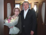Сегодня утром мэр города Наиль Магдеев поздравил с днем рождения маму Героя России Сергея Чебнева - Ольгу Константиновну. Он вручил ей букет и подарки.