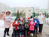 Воспитанники подготовительных групп раздавали родителям буклеты, напоминающие о важности сопровождения ребенка при перемещении по улице и переходе проезжей части.