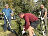 Всего посажено 100 деревьев: 61 ель, 29 рябин и 10 пирамидальных тополей. Каждый участник подписал дерево, которое он посадил.
