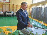 Руководитель Исполнительного комитета прибыл совместно с супругой на избирательный участок №2176.