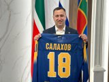 Руководитель Исполнительного комитета, президент ХК "Челны" Фарид Салахов в мэрии приветствовал команду и дал напутствия перед началом нового сезона. Команда вручила ему именной свитер.