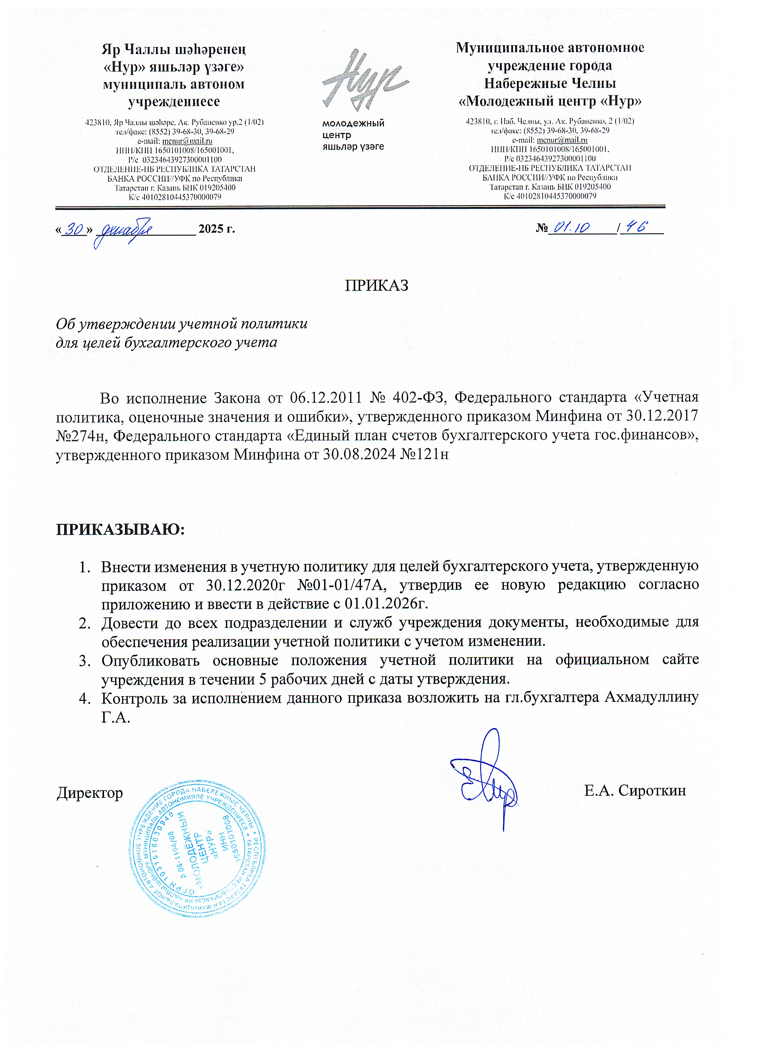 Устав учреждения + Учётная политика