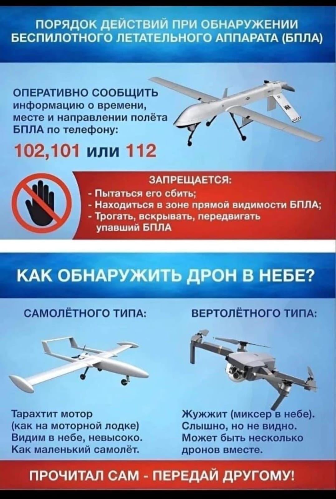 Рекомендации при обнаружении БПЛА