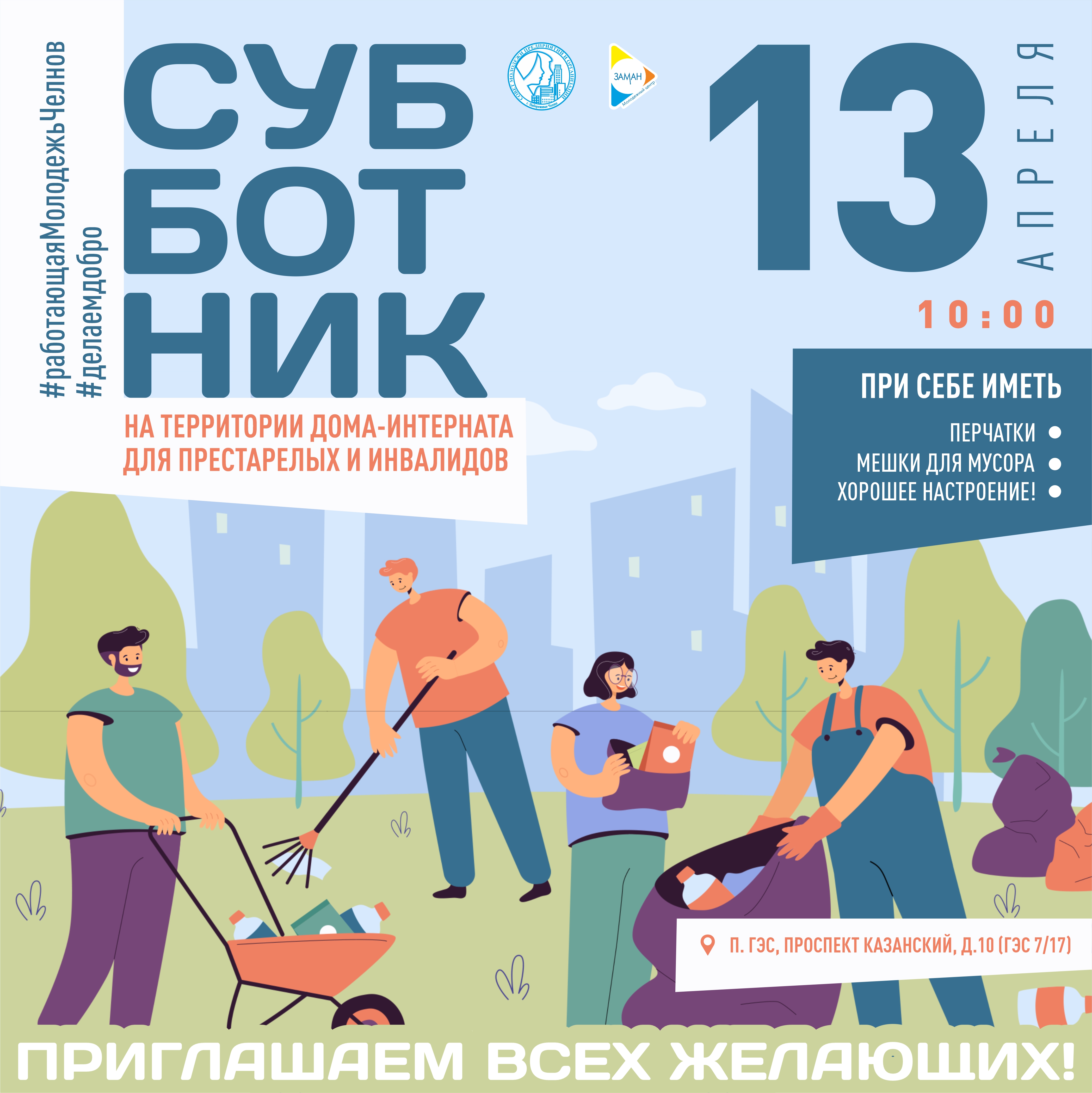 13 апреля в 10:00 часов состоится субботник на территории дома - интерната для престарелых и инвалидов.