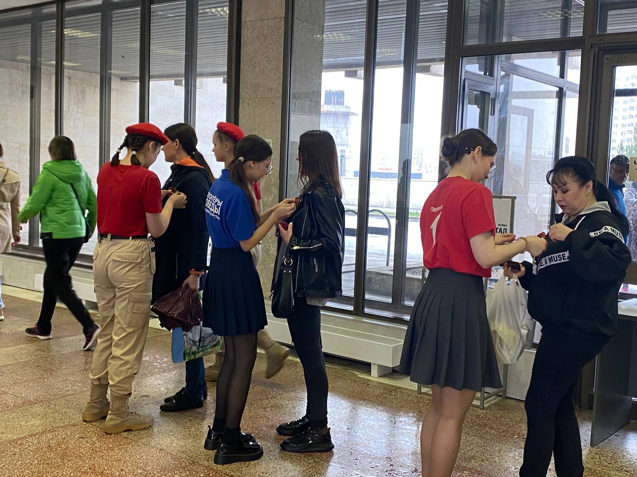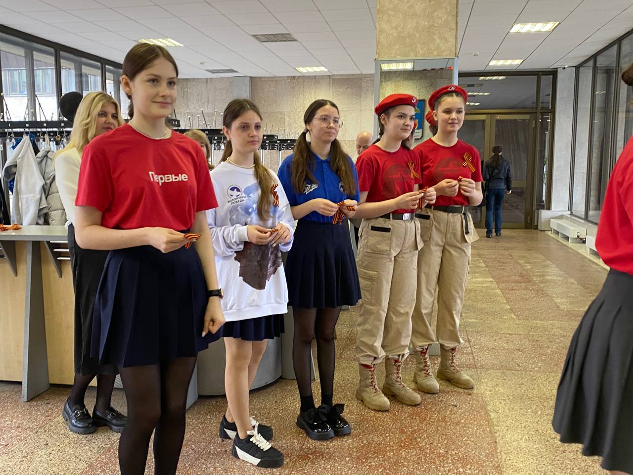 Сегодня волонтеры, школьники "Движения Первых" раздавали символ уважения к ветеранам и гордости за Великую Победу в Исполнительном комитете города.