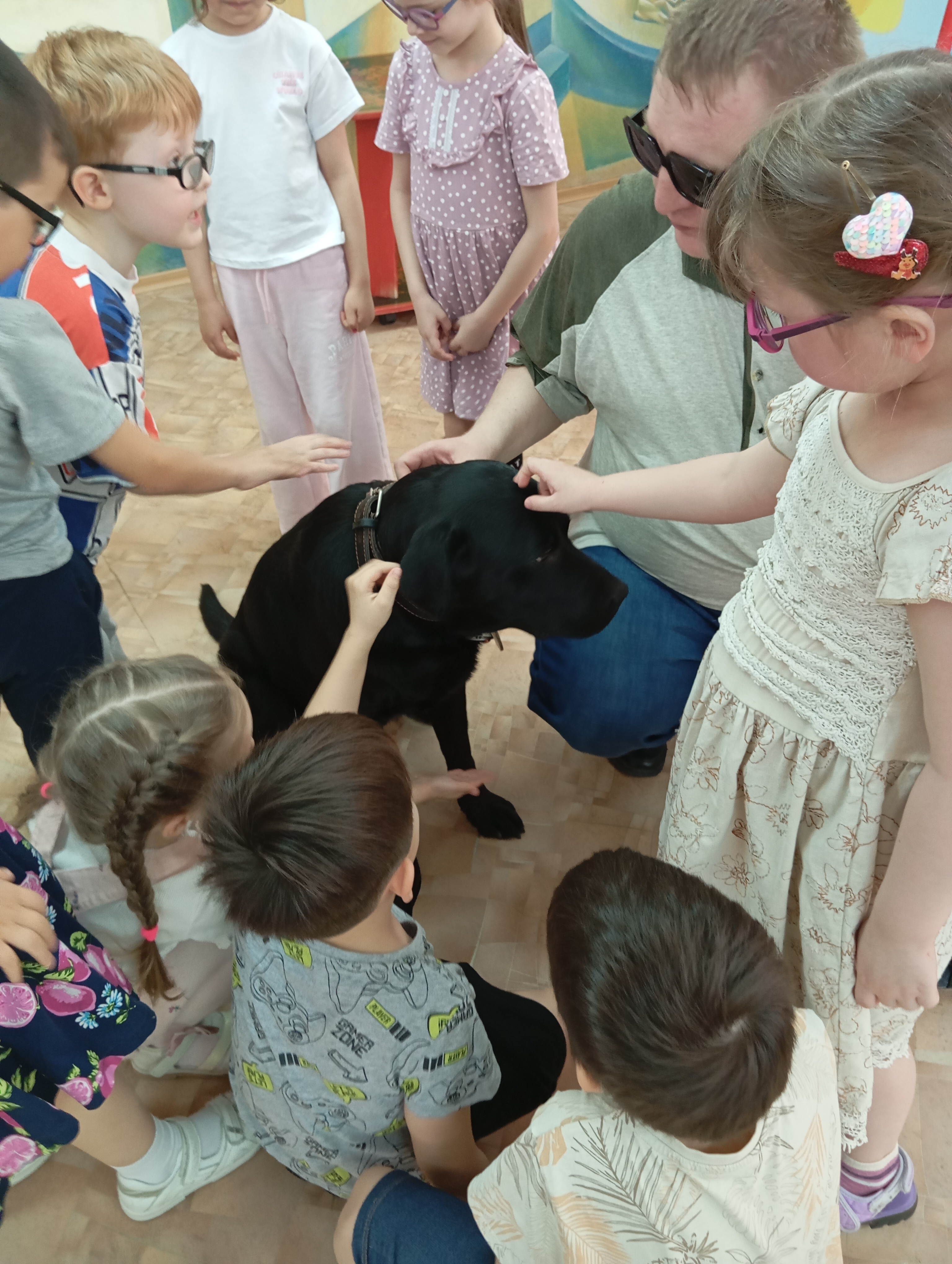 Дошкольники узнали, что собака поводырь – это не просто помощь при передвижении, это серьезная психологическая поддержка для незрячего человека, который становится не таким зависимым от помощи посторонних людей.