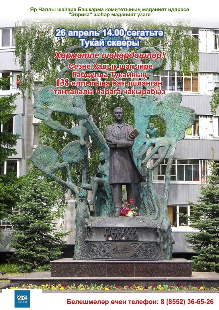 В честь этого дня в Набережных Челнах пройдет ряд мероприятий. В сквере Габдуллы Тукая в 14:00 к памятнику великого татарского поэта возложат цветы. Прозвучат песни в исполнении солистов «Эврика». Вслед