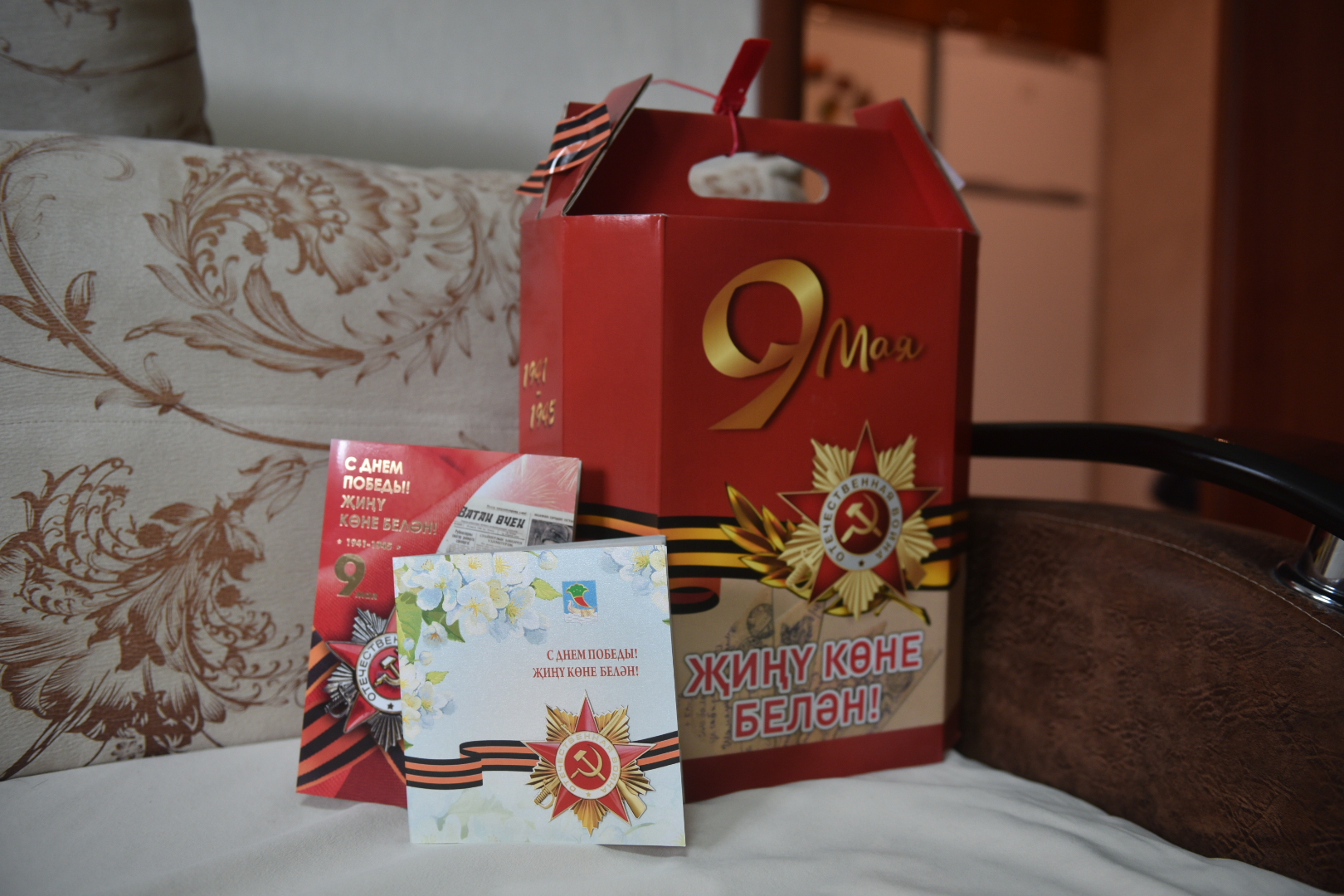 Ветерана поздравили с Первомаем и грядущим Днём Победы, вручили подарки от Раиса Республики Татарстан Рустама Минниханова.