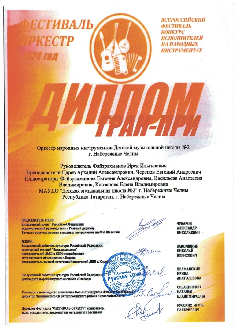 Оркестр детской музыкальной школы №2 стал обладателем диплома Гран - при конкурса.