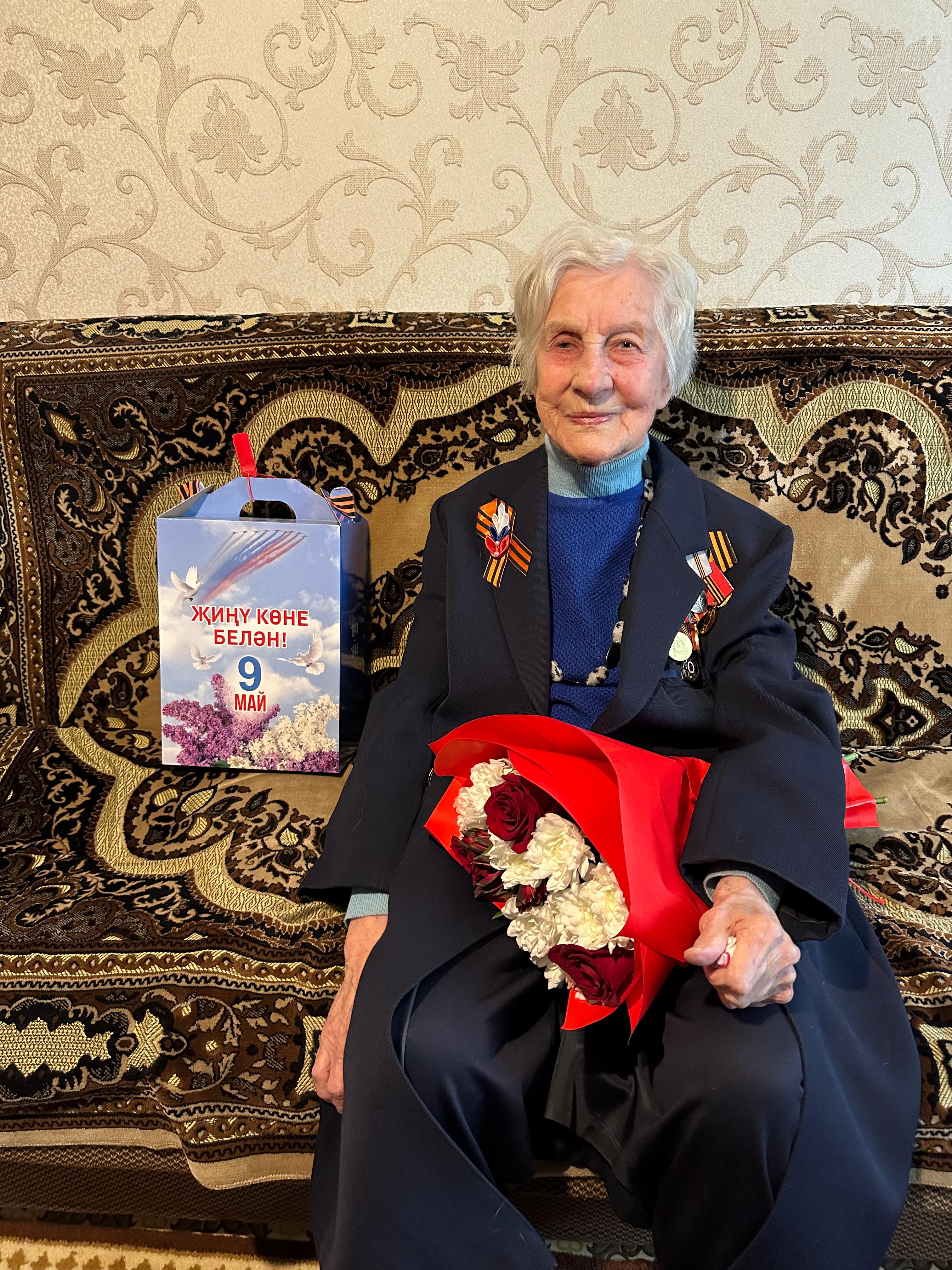 От имени Раиса Республики Татарстан Рустама Минниханова и мэра Набережных Челнов Наиля Магдеева продуктовый набор и поздравительную открытку ветерану войны Надежде Филипповне Мищенко вручили заместитель главы муниципального района Ирина Сагидуллина и глава администрации Центрального района Эдуард Фаттахов.