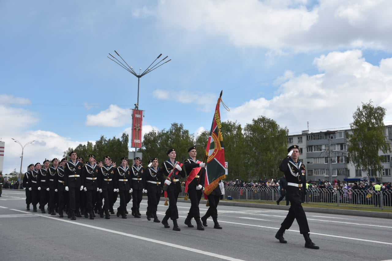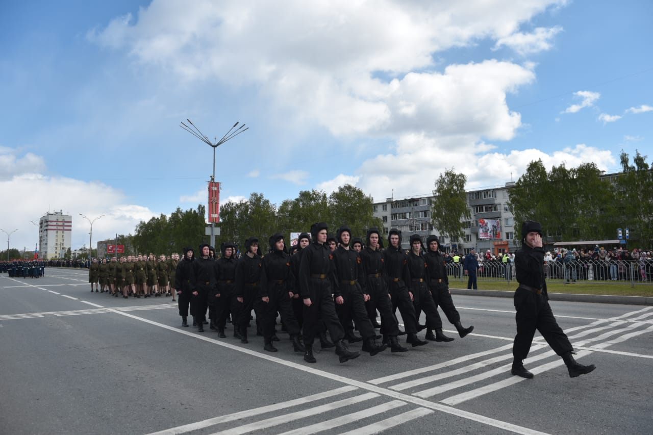 Перед трибуной парадным строем идут воспитанники корпуса «Пожарные спасатели» кадетской школы имени Никиты Кайманова. Школа воспитывает будущих пожарных и спасателей и гордится ими. Кадеты, как юноши, так и девушки, проходят интенсивную пожарно-спасательную и общевойсковую подготовку.