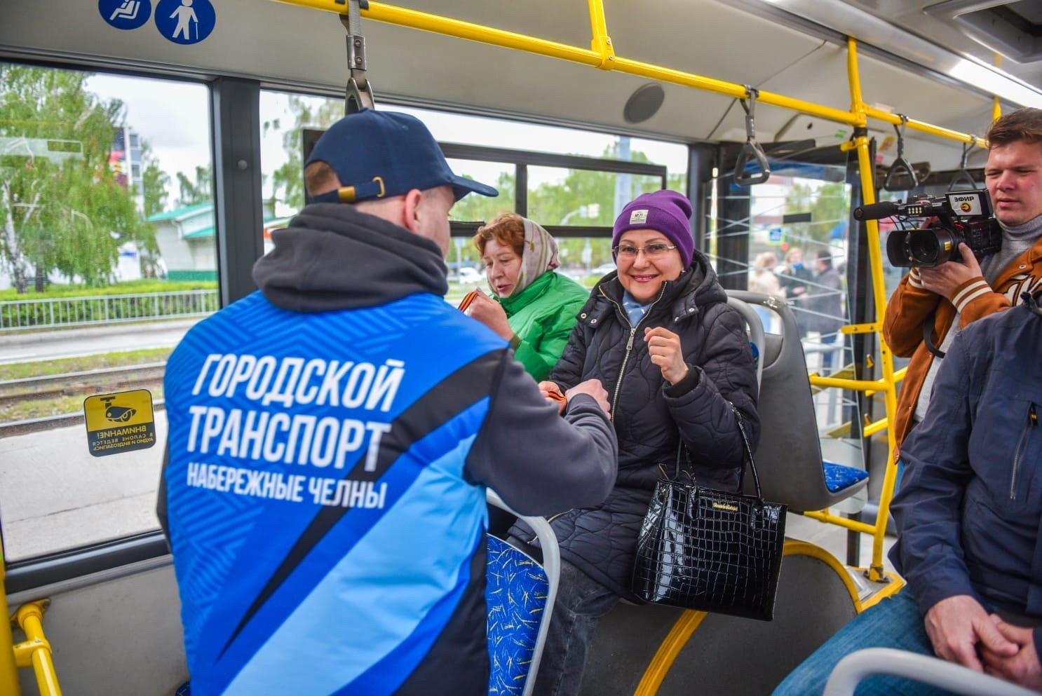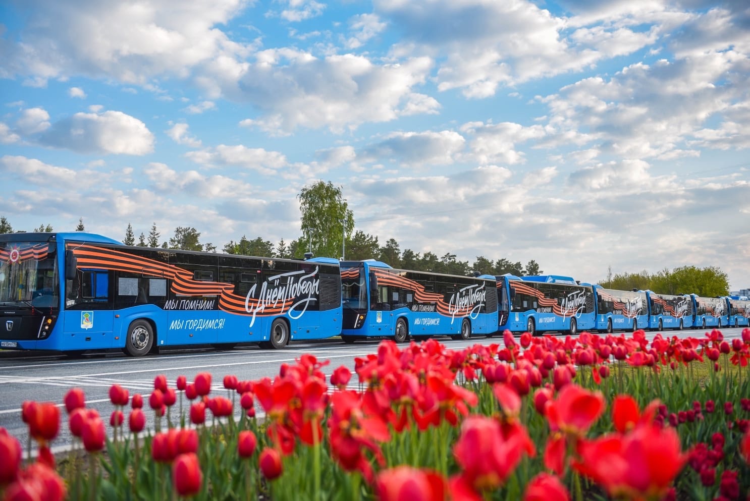 Среда, 8 мая 2024, 16:13В Набережных Челнах курсируют автобусы Победы, торжественно украшенные к 9 мая.