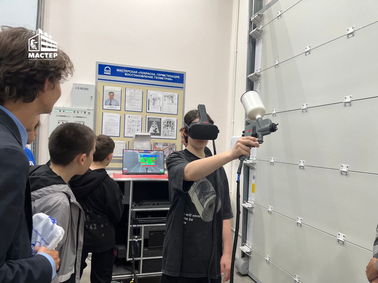 Дети попробовали себя в роли экспертов по окрашиванию кабин – в очках виртуальной реальности им была видна площадь для самой окраски. На экране после такой тренировки можно увидеть допущенные ошибки.