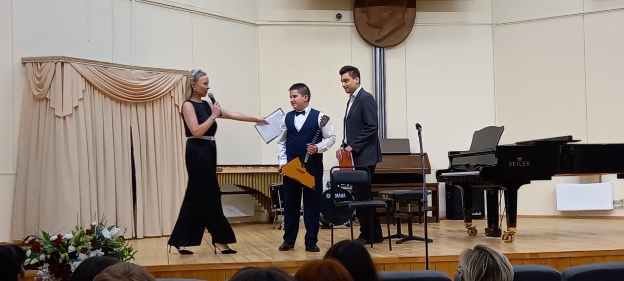 На концерте выступал челнинец Роман Хуснутдинов - учащийся детской школы искусств города Набережные Челны по классу балалайки.