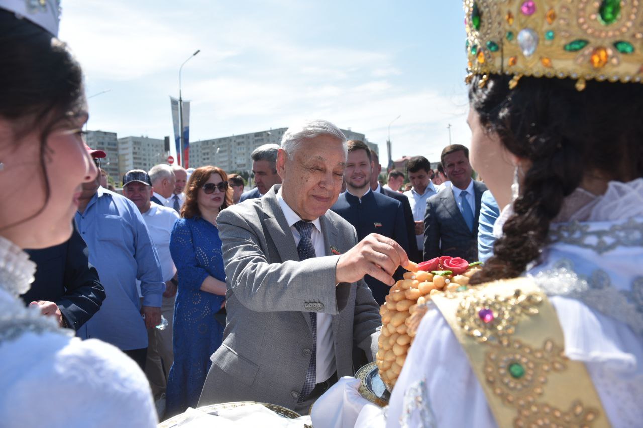 Поздравить челнинцев с национальным праздником приехал Председатель Государственного Совета Республики Татарстан Фарид Мухаметшин, а также руководители республиканских ведомств, главы муниципалитетов республики Татарстан. В числе почетных гостей впервые челнинский Сабантуй посещают олимпийские чемпионы – Шамиль Хисамутдинов и Алексей Мишин.