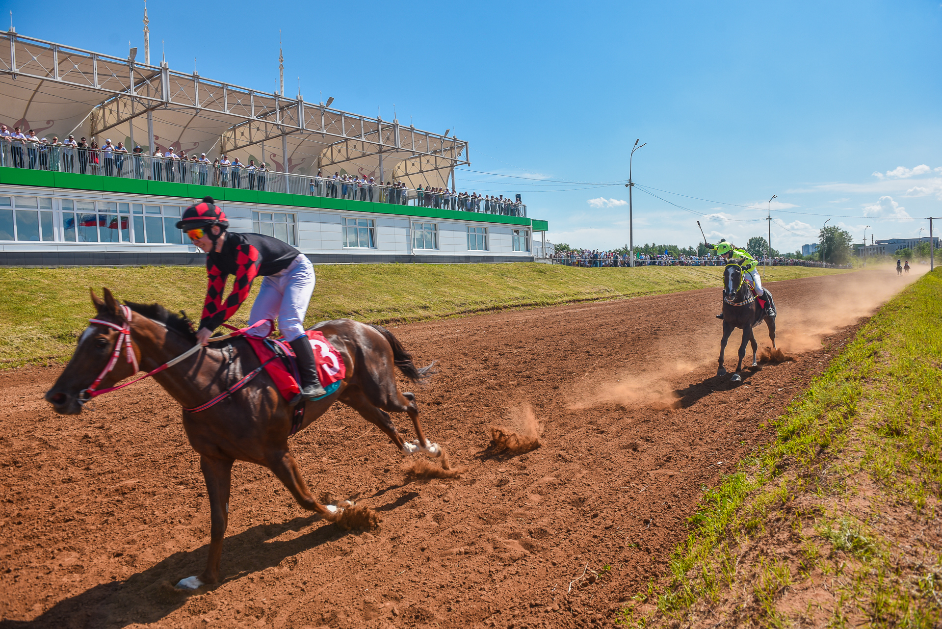 На конноспортивные скачки в честь Сабантуя-2024 в Набережные Челны съехались спортсмены со всего Татарстана и соседних республик: Башкортостана, Удмуртии, Ульяновской области. Организовано 16 стартов, в них принимают участие 64 наездника. Организаторы приготовили в том числе и детские старты, в которых принимают участие воспитанники конно-спортивной школы "Тулпар". К традиционным гонкам чистокровных скакунов организаторы провели и скачки пони. В числе дистанций были заезды на 1 200, 1 600, 2 400 и 3 200 метров.