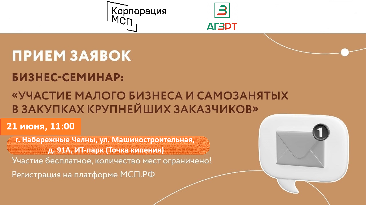 Министерство экономики Республики Татарстан совместно с Корпорацией МСП проведут бесплатный семинар по вопросам участия субъектов малого и среднего предпринимательства в закупках.