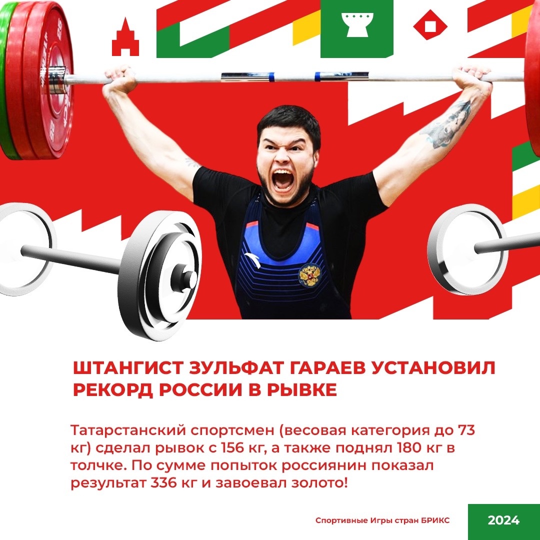 Челнинский спортсмен Зульфат Гараев установил новый рекорд России по тяжелой атлетике на Играх БРИКС.