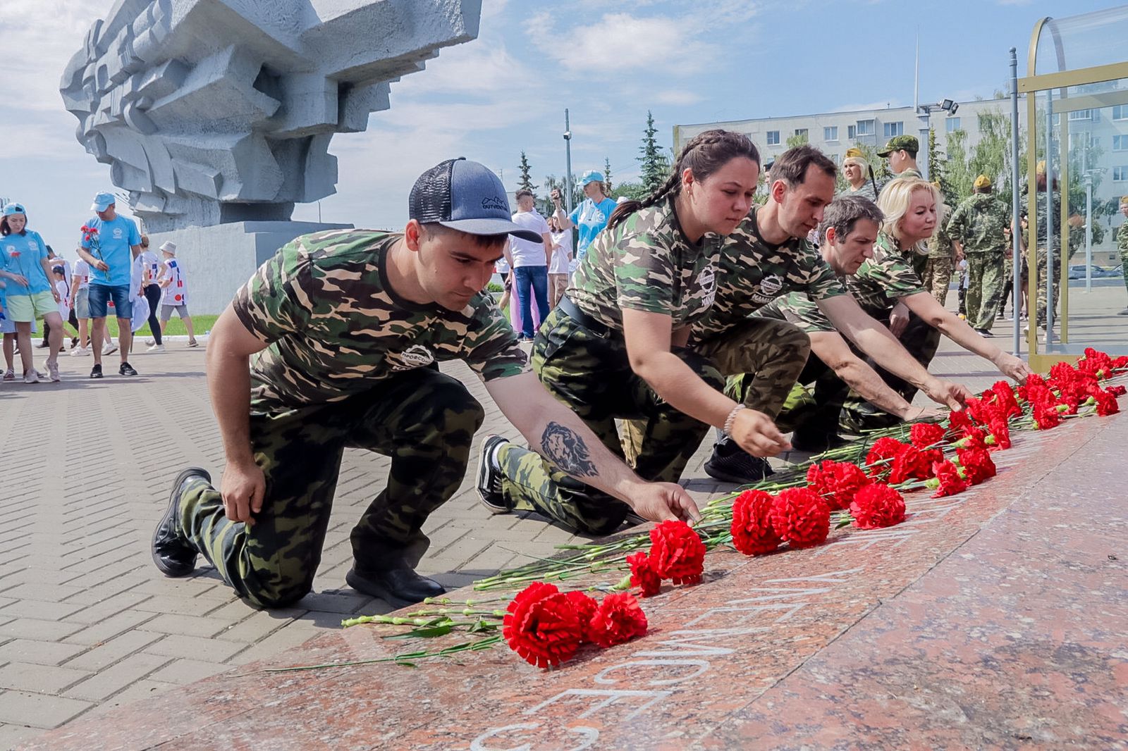 18 команд приняли участие в официальном открытии слёта около памятника "Родина-мать".