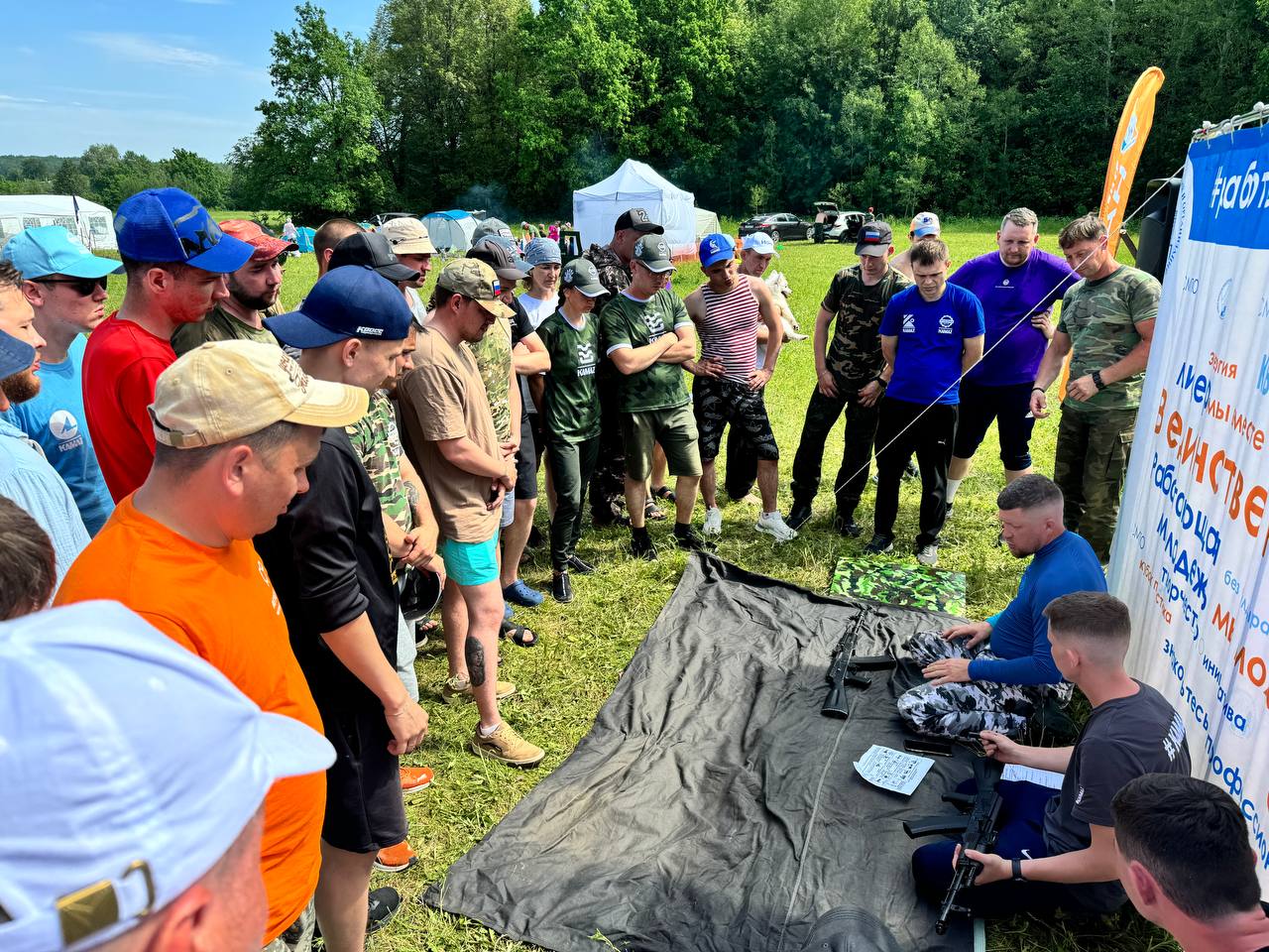 В рамках слета участники проходили конкурсные испытания: "Визитка", "Стрельба" и "Военнизированный городок", который включает в себя испытания по метанию гранат и оказанию медицинской помощи, а также заплыв на катамаране и конкурс мероприятия военной песни.
