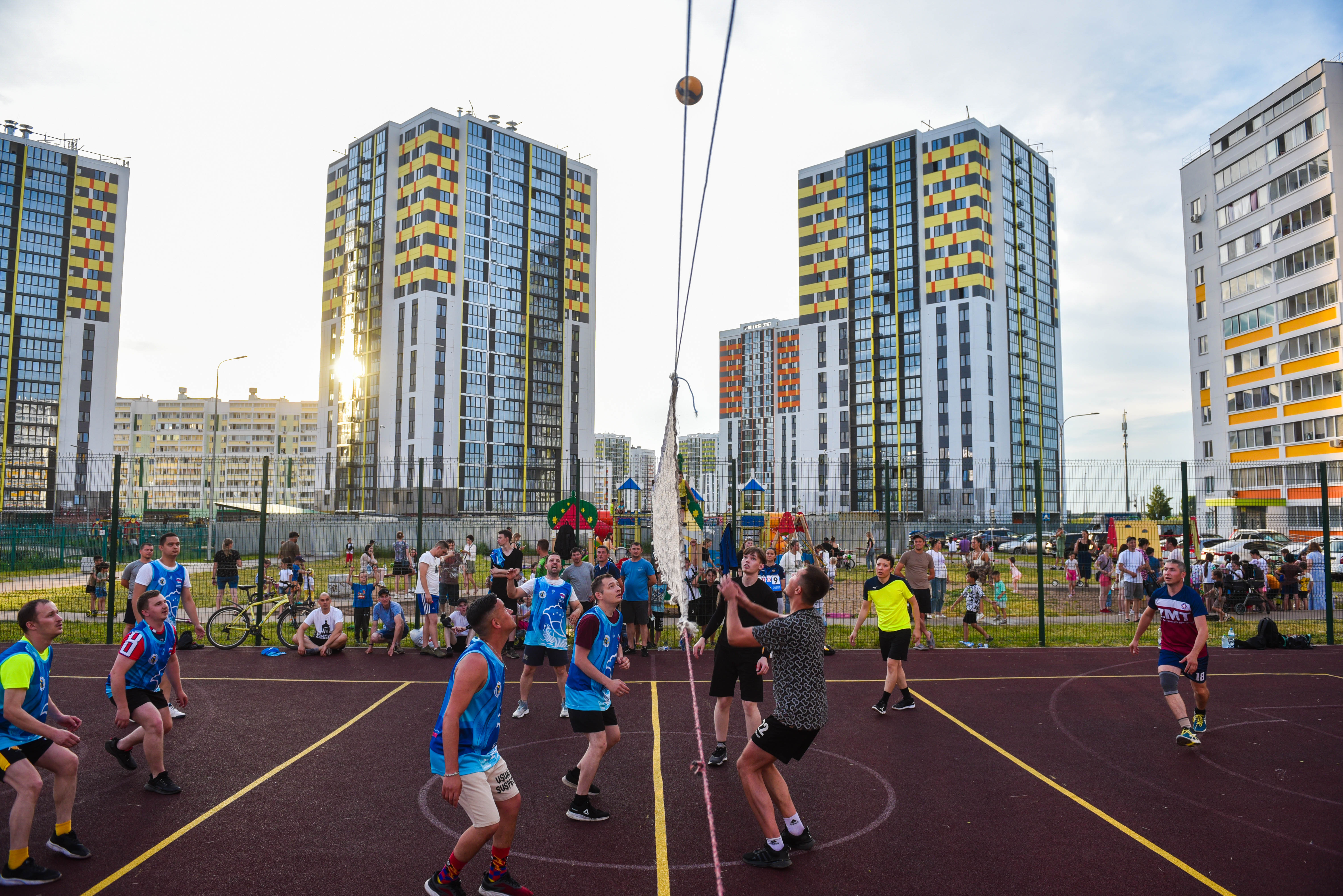 Во дворах создали все условия для проведения турниров: обновили волейбольные сети, мячи и экипировку игроков.