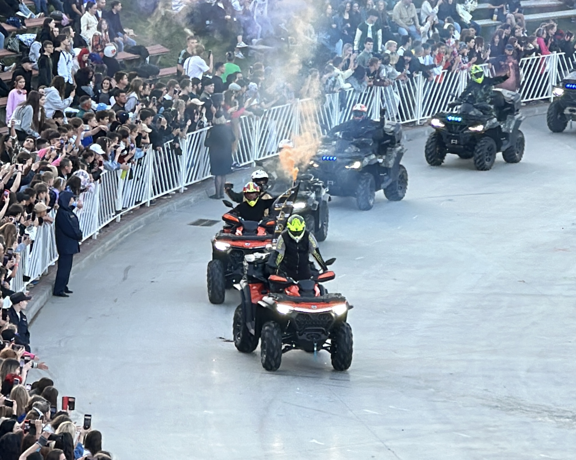 Всех присутствующих с праздником поздравляет мэр города Наиль Магдеев: «Мы гордимся молодежью нашего города. Вы креативные, умные ребята и девчата, которые активно работают, развивают экономику, строят самые лучшие в мире автомобили КАМАЗ. Сегодня на празднике также находятся выпускники девятых и одиннадцатых классов. Давайте поздравим их с окончанием школы, а также пожелаем хорошей и счастливой дороги во взрослую жизнь. С праздником Днем молодежи!».
