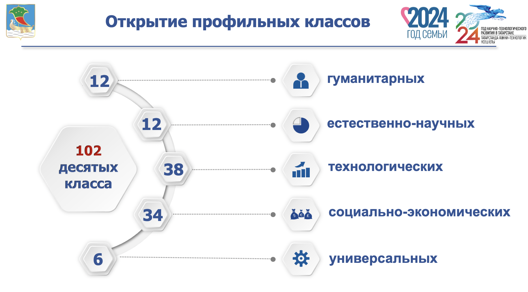 В 2023/2024 учебном году планируется открытие 102 профильных 10 классов на базе 60 образовательных учреждений города. Подробная информация о профилях и профильных предметах размещена на официальном сайте управления образования.