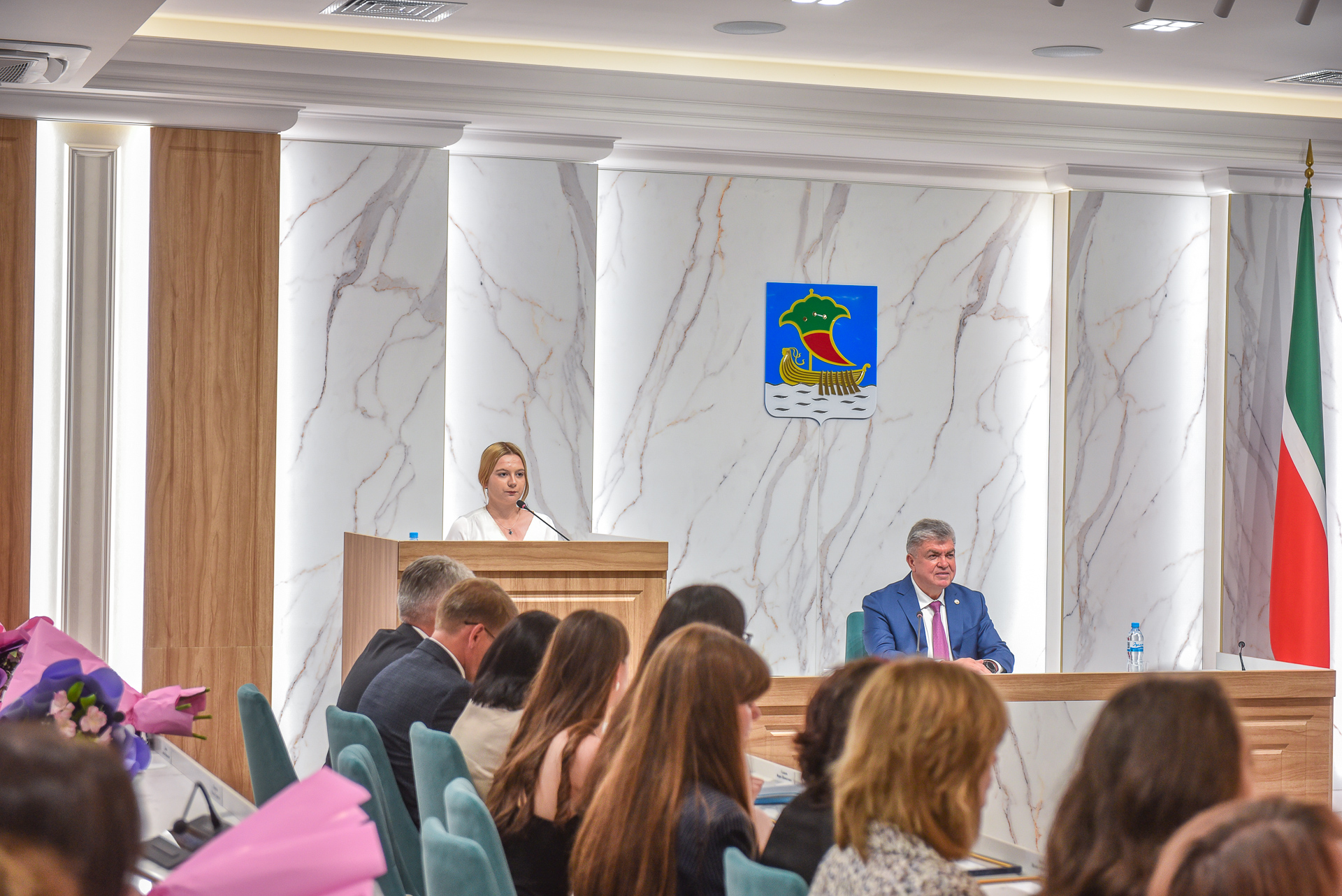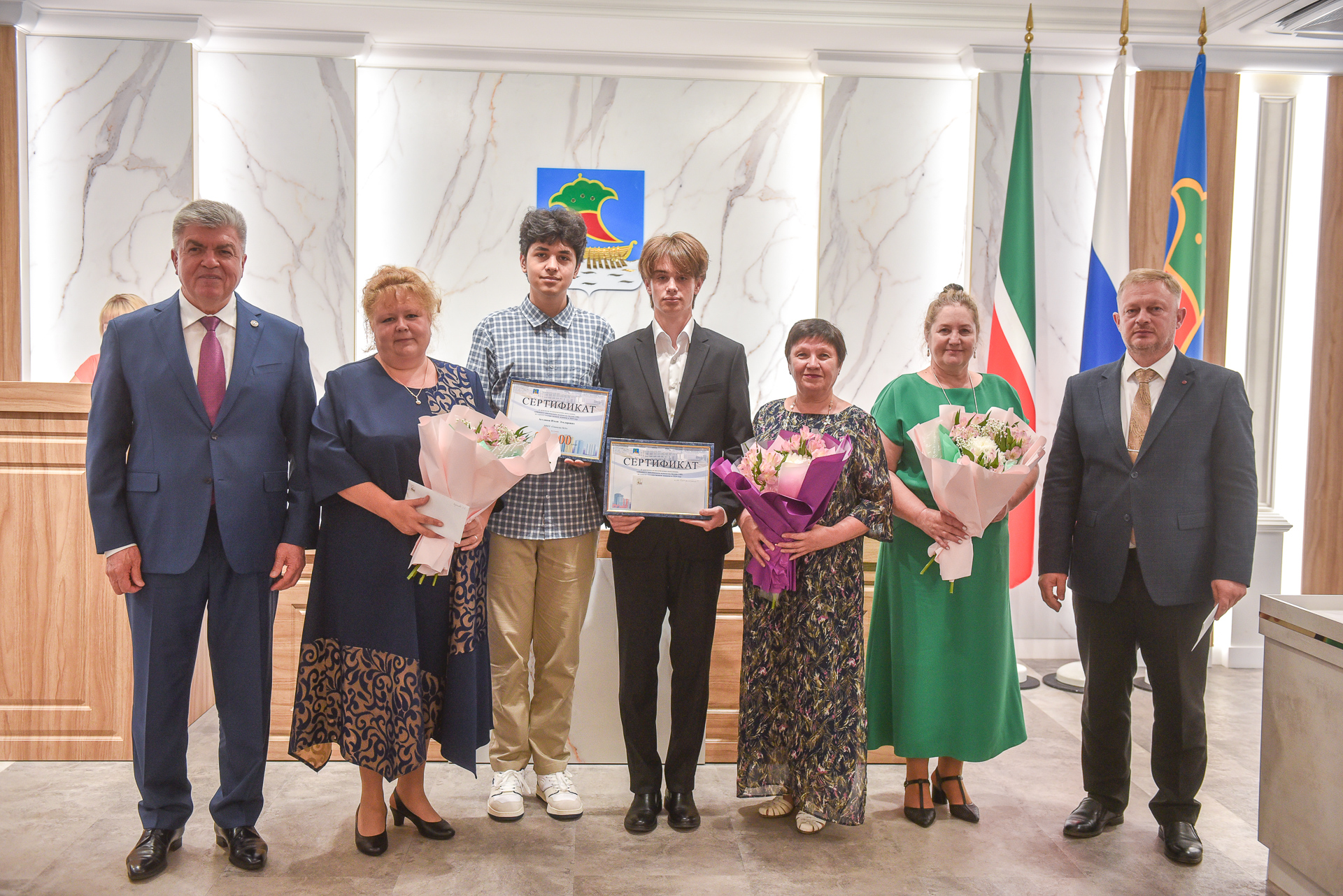 Сегодня в мэрии состоялась встреча мэра города Наиля Магдеева с отличившимися выпускниками, которые сдали ЕГЭ-2024 на высшие баллы. На данный момент в городе 71 стобалльник, в прошлом году их было 28. Наибольшее количество высших результатов ученики набирают по русскому языку, химии, математике, литературе и информатике.Наиль Магдеев поприветствовал присутствующих: «Аплодисменты, в первую очередь, нашим учителям, родителям, вашим родным и близким. Мы встречаемся с молодыми, выдающимися людьми, которые достигли наивысших результатов. Это тяжелый кропотливый труд, работа с наставниками и эту тяжелую работу в довольно юном возрасте вы выполнили на отлично! Вы – лучше всех! Об этом можно и нужно говорить. Вы работали больше всех и получили результаты, которые сегодня радуют всех. Хотите быть успешными – будьте ими, старайтесь, трудитесь, больше, чем другие. И так в любой сфере деятельности. Те первые результаты, которые вы сегодня получили, подтверждают это».В этом году три выпускника получили стобалльные результаты по двум предметам: Ильяс Аетдинов и Егор Серединский – выпускники гимназии №26 и Диана Бакирова – выпускница школы №56. К примеру, в прошлом году таких высоких результатов достиг только один ученик из гимназии №76.Сегодня в зале присутствуют и педагоги, подготовившие выпускников. Все выпускники, набравшие наивысшие баллы на ЕГЭ, получили 10 тысяч рублей, а учителя, которые их подготовили – получили премию в размере двух окладов за один результат. Соответственно, если учитель подготовил двух или трех выпускников, сумма будет увеличена на один оклад за каждого выпускника. Наград удостоены и директора образовательных школ.