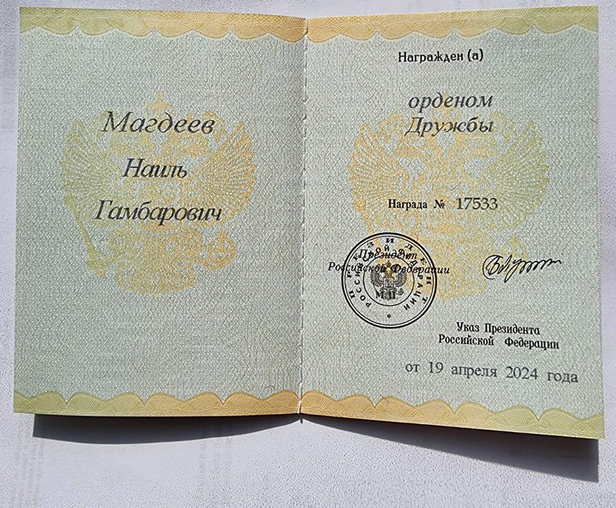 Напомним, что в 19 апреля текущего года Президент Российской Федерации Владимир Путин подписал Указ, в котором отмечено, что Наиль Гамбарович Магдеев награждается за заслуги в развитии местного самоуправления в Российской Федерации и многолетнюю добросовестную работу.