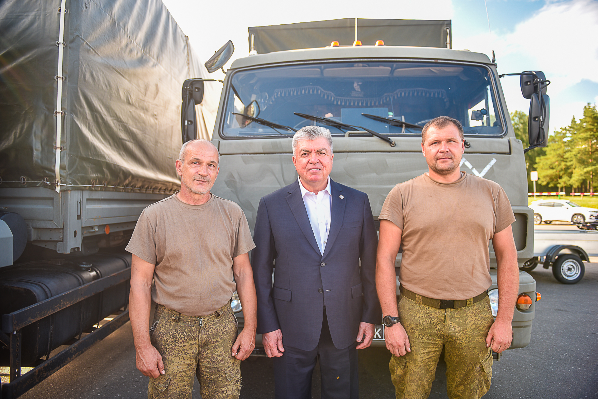 Когда говорят, что народ и армия едины, то у нас в городе у этого красивого слогана есть реальные дела. Вы их видите практически каждую неделю: в конце июня мы передавали 10 квадроциклов, прицепов, специальные приборы. Сегодня мы сформировали вместе с вами очередную партию шефской помощи Всё, что за мной, 20 тонн груза, сформировали наши настоящие мужчины, настоящие патриоты.