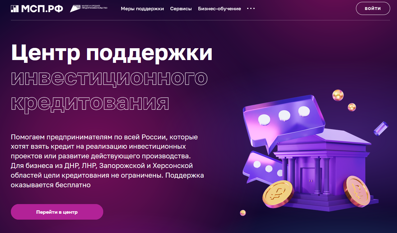 На цифровой платформе МСП.РФ запущен сервис «Центр поддержки инвестиционного кредитования» (далее – ЦПИК) по сопровождению инвестиционных проектов субъектов малого и среднего предпринимательства и выработке рекомендаций по подготовке документов и структурированию сделок в целях инвестиционного кредитования.