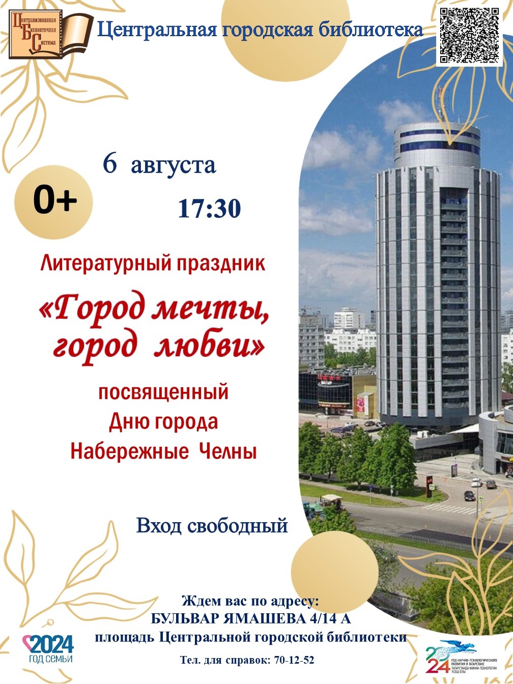 6 августа в старой части города в пос. ГЭС Центральная городская библиотека приглашает челнинцев и гостей города принять участие в литературном празднике "Город мечты, город любви". Начало мероприятия анонсировано на 17:30.