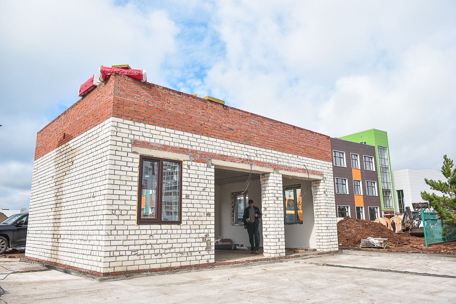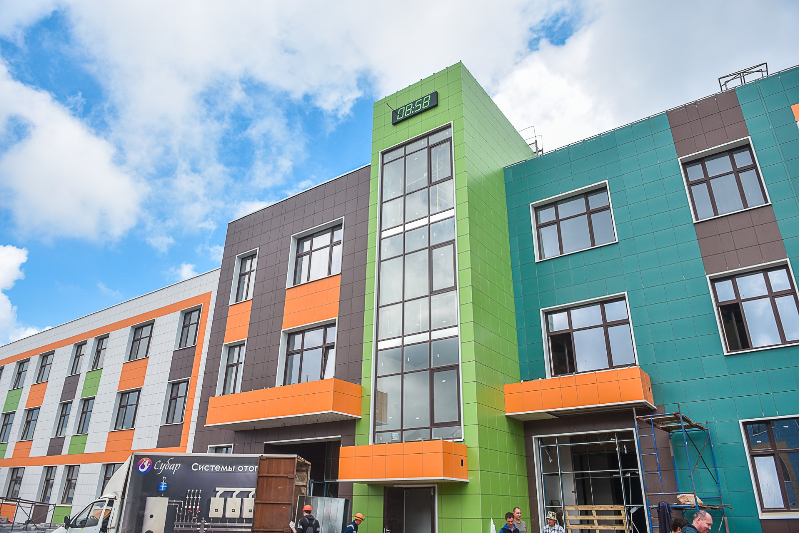 Строительство школы ведет компания «Евростиль». Сейчас здесь идет монтаж актового и спортивного залов, устройство фасада и кровли, устройство внутренних сетей (водоснабжение, водоотведение, электроснабжение, вентиляция, кондиционирование, отопление), а также благоустройство территории. Возведен контрольно-пропускной пункт.