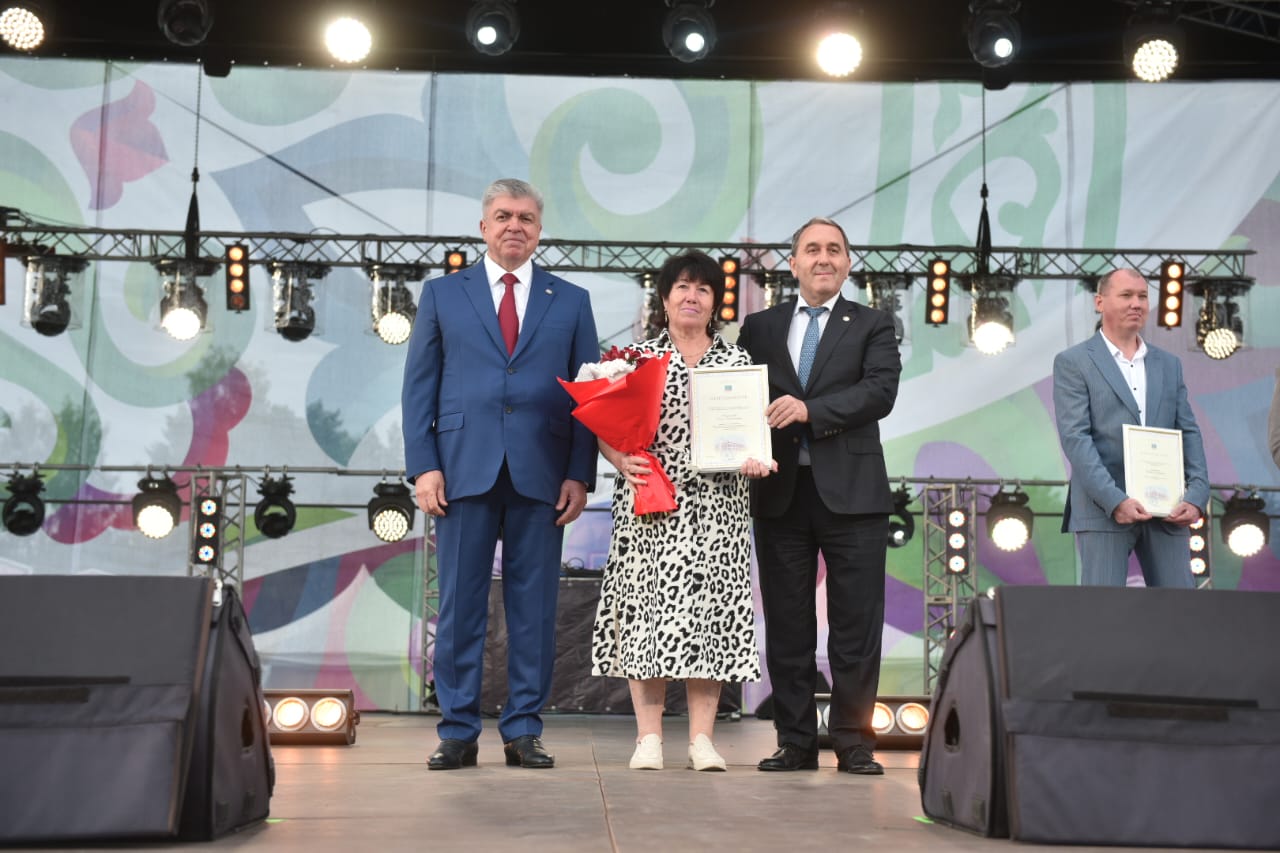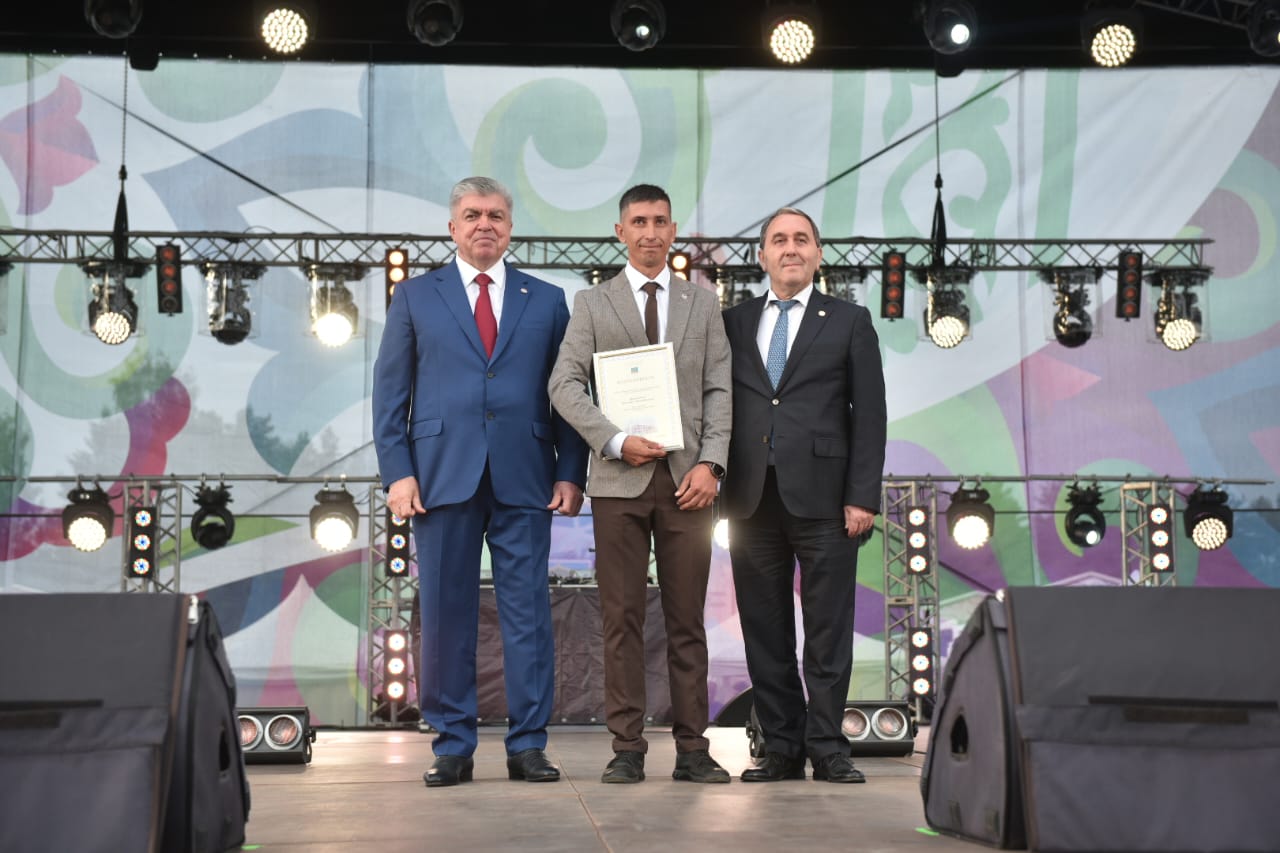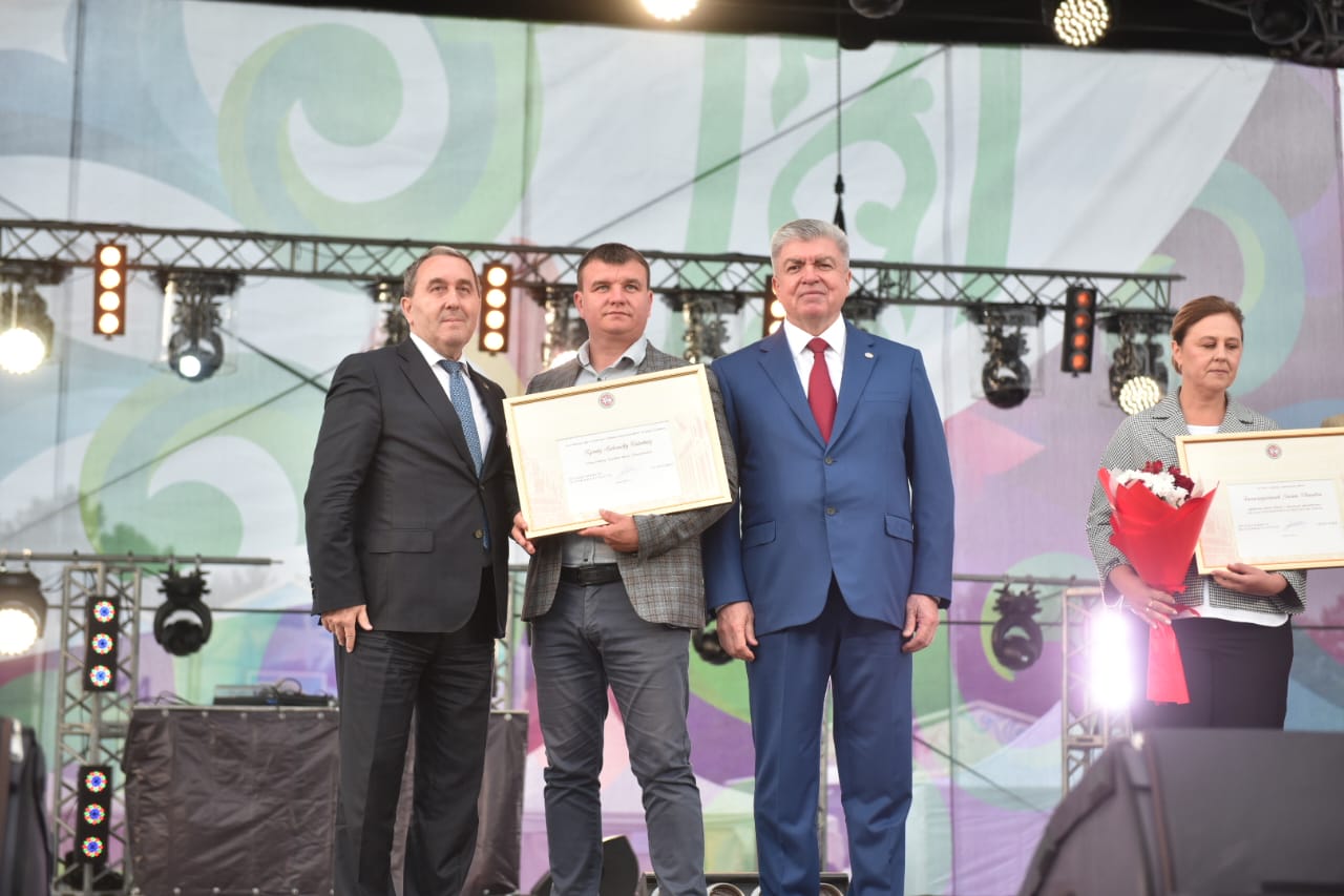 В честь Дня строителя на главной сцене майдана мэр города Наиль Магдеев вручил награды за высокие производственные достижения и большой вклад в развитие строительной индустрии.