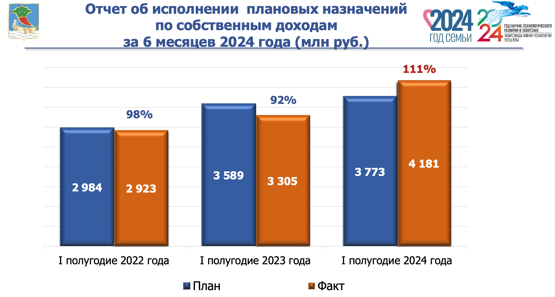 По итогам первого полугодия 2024 года за последние годы достигнута положительная динамика. Плановые назначения шести месяцев по собственным доходам выполнены на 111%.