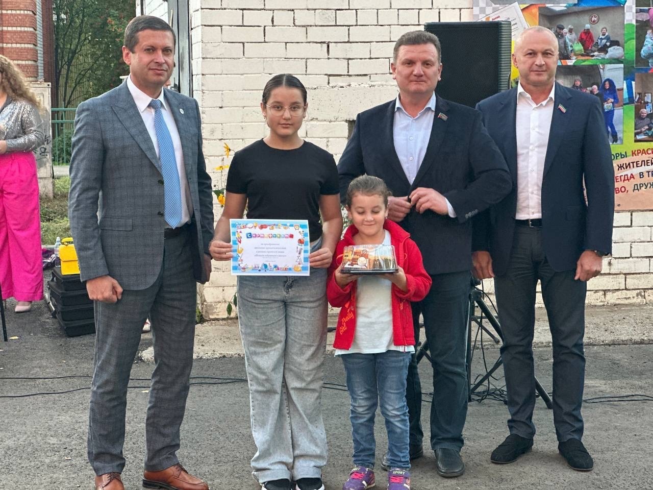 На празднике двора в 13 комплексе с жителями встретились депутат Государственного Совета Олег Николаев, депутат Городского Совета Андрей Елантьев и глава администрации Центрального района Эдуард Фаттахов.