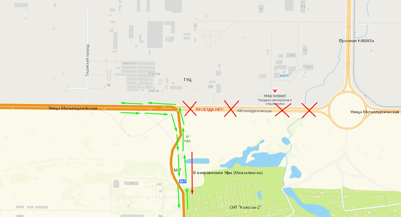 С 30 августа по 31 октября вводится ограничение движения на съезде с улицы Металлургическая (со стороны проспекта «КАМАЗ») на М-7 в направлении Уфы (Мензелинска) в связи с реконструкцией пересечения М-7 с улицей Металлургическая.