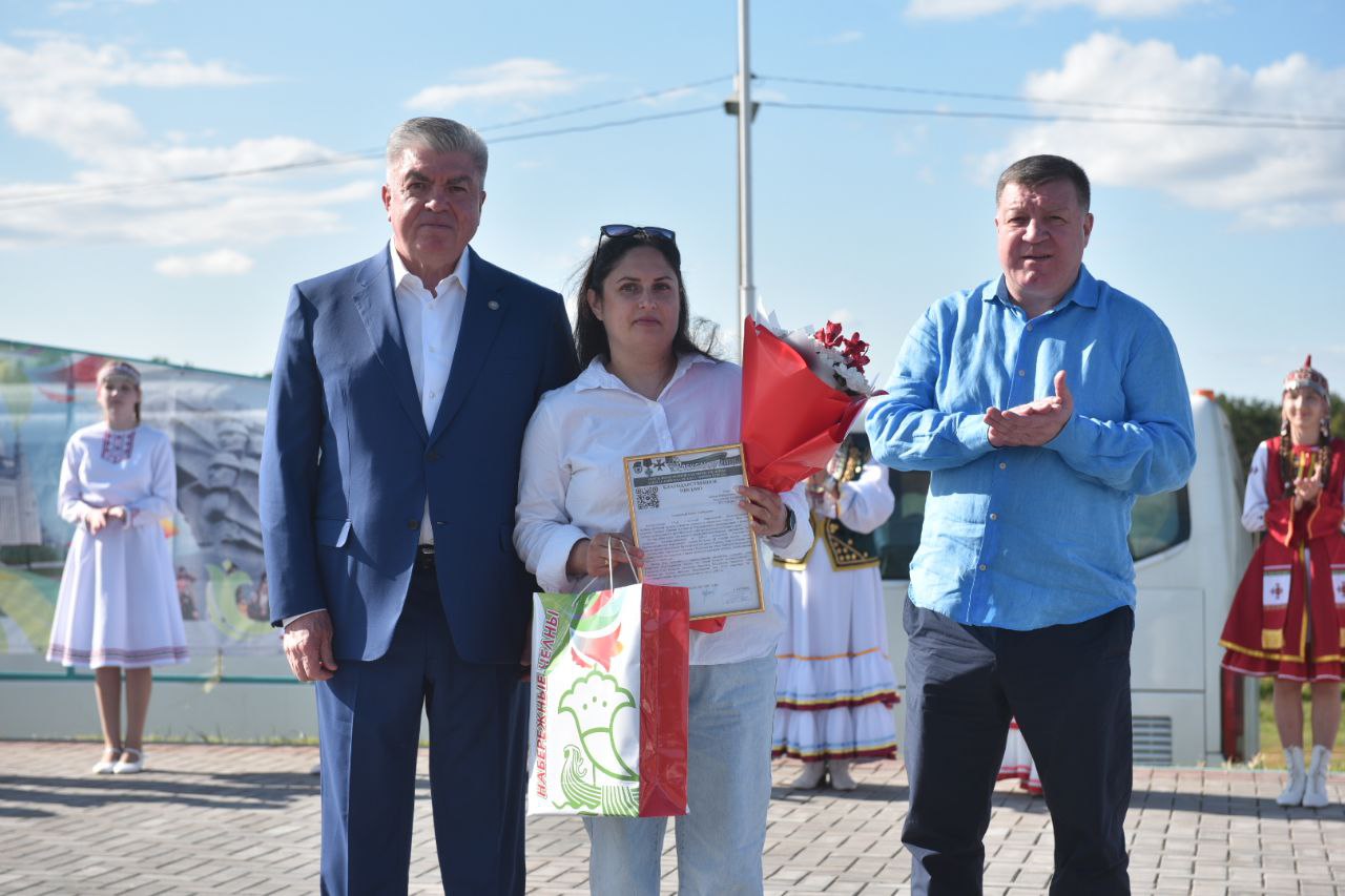 В ходе праздничных мероприятий на ипподроме мэр города Наиль Магдеев вручил благодарственное письмо, которое было адресовано супруге военнослужащего Екатерине Пешкиной. Глава семьи Александр Пешкин отмечен руководством военной частью за безупречную службу и мужество, проявленное в ходе специальной военной операции.
