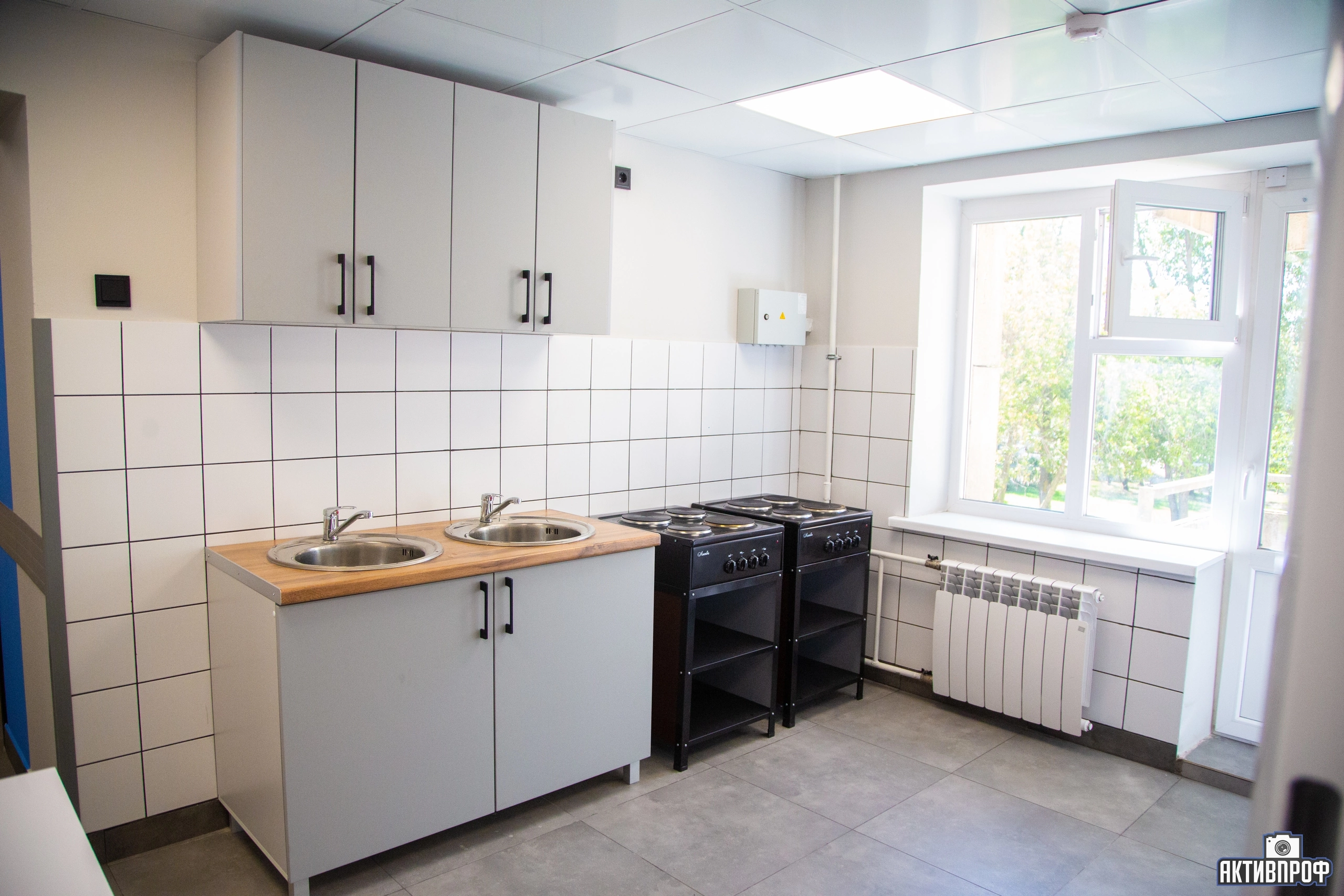 В ходе капремонта общежития была заменена крыша, все коммуникации, лифты, установлена новая входная группа, появились новые двери, окна, потолок, заменена сантехника и плиты. Кроме того, на каждом этаже теперь есть по два холодильника. На первом этаже общежития появилось новое общественное пространство.