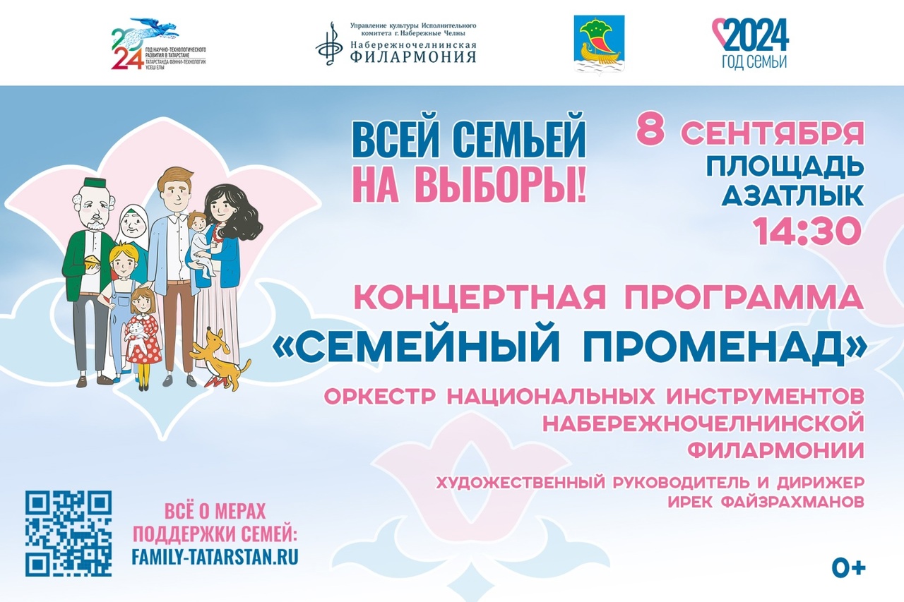 Ярким финалом праздничного вечера творческих коллективов Набережночелнинской филармонии на площади Азатлык, станет концертная программа «Семья – это мы», представленная артистами эстрадно-джазового оркестра «Визит» в 16:30. В программе будут представлены хиты оркестровой джазовой музыки, повествующие о главных человеческих ценностях на русском и татарском языках. В концерте примут участие солисты: Анна Меерсон, Рустам Асадуллин, Ландыш Миннахметова.