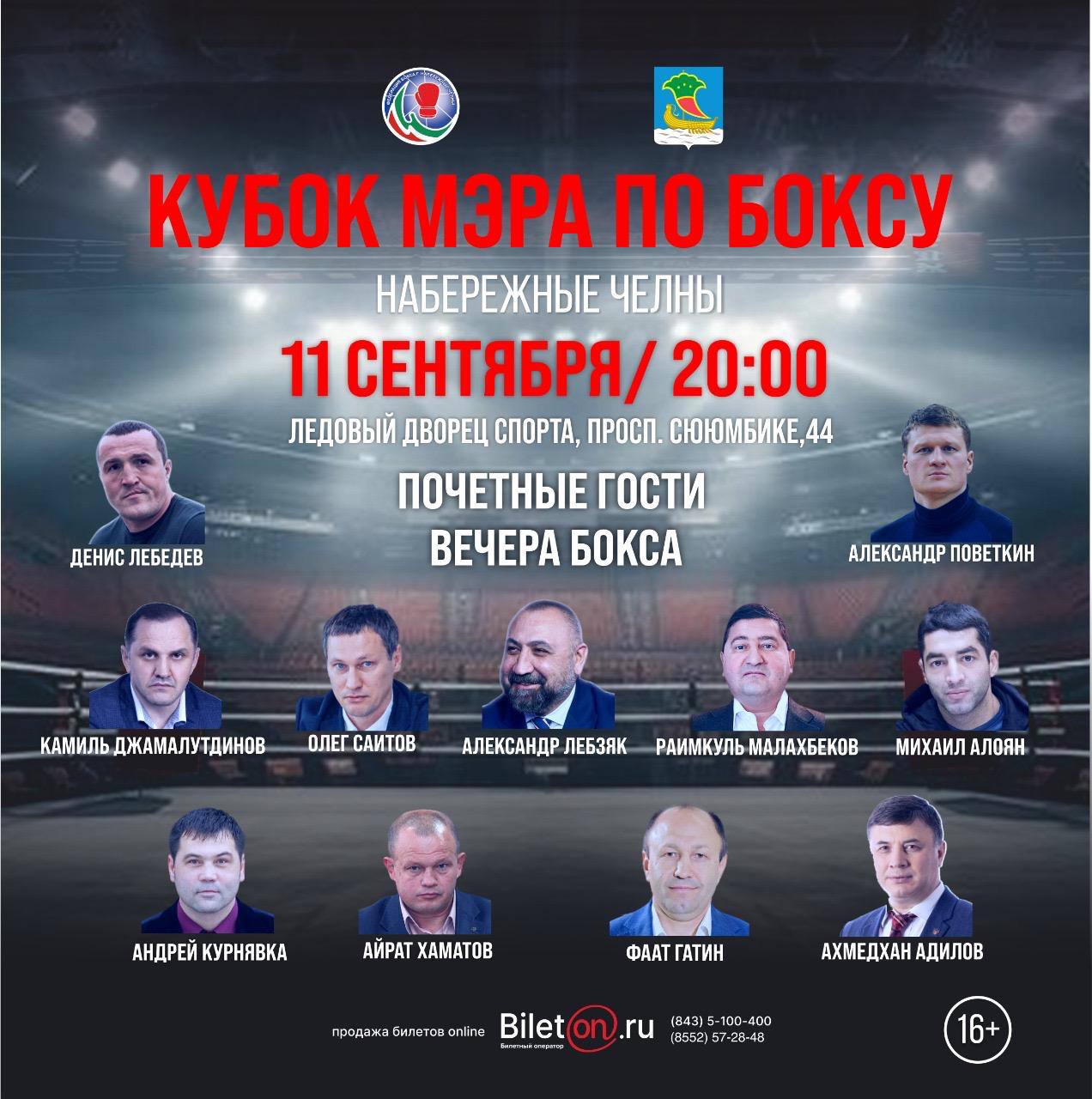 11 сентября в 20:00 в Набережных Челнах на арене Ледового дворца спорта состоится «Вечер профессионального бокса на «Кубок Мэра города Набережные Челны»Любителей бокса ожидают восемь зрелищных поединков с участием сильнейших спортсменов стран.Зрителей ждут два захватывающих боя «Кубок Мэра» между сильнейшими боксерами из России и США. В первом поединке противостоять друг другу будут российский боксер, мастер спорта международного класса по боксу, бронзовый призер чемпионата России, двукратный победитель командного Кубка России Хикмет Гараев и боксер из США Найджел Финнелл.