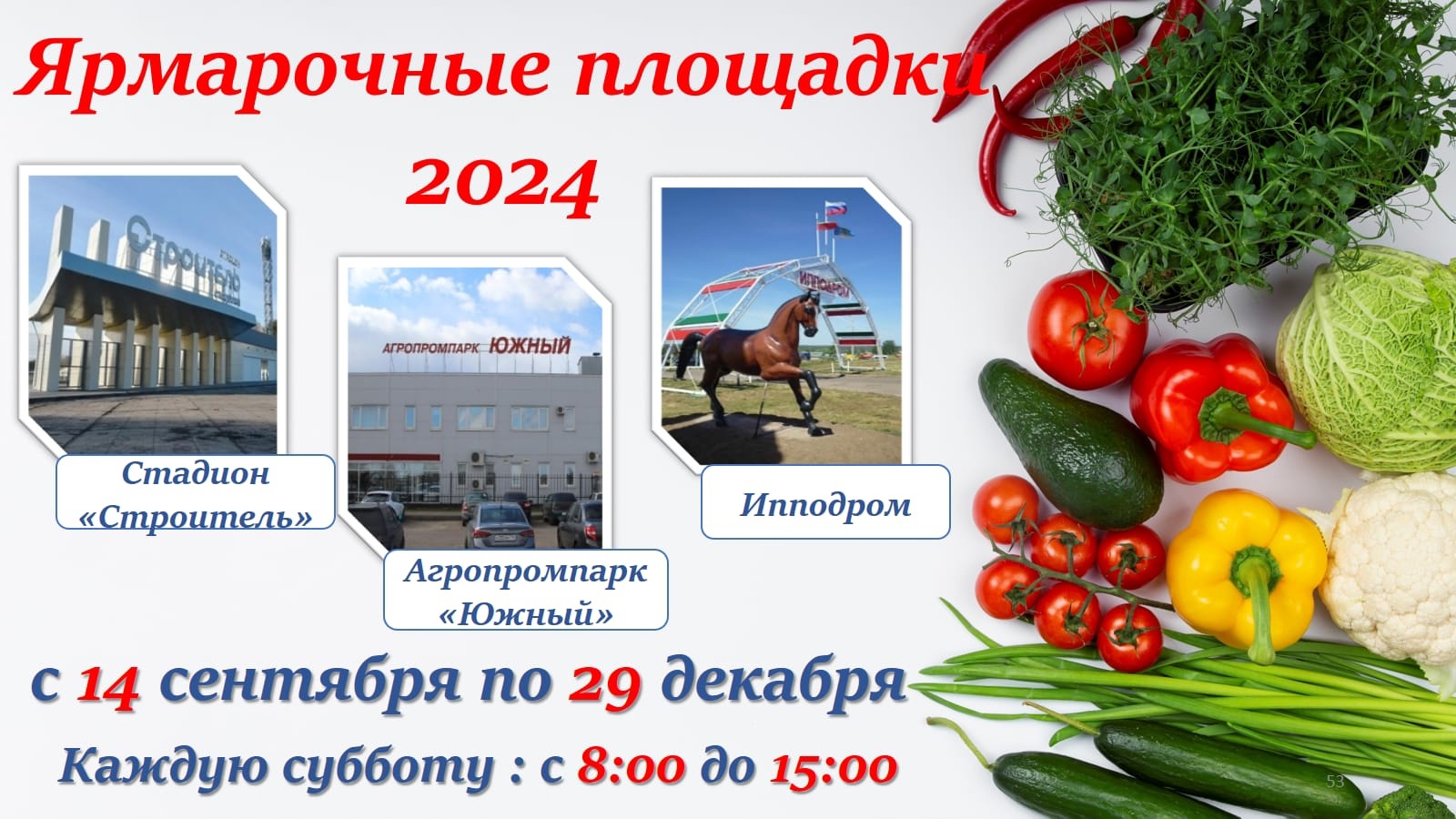 С этой субботы, 14 сентября, в Набережных Челнах стартуют традиционные сельскохозяйственные ярмарки. Они будут работать каждую субботу с 8:00 до 15:00 на трех площадках города: перед стадионом «Строитель», территории ипподрома, а также агропромышленном парке «Южный». Покупателям представят все виды сельскохозяйственной продукции.