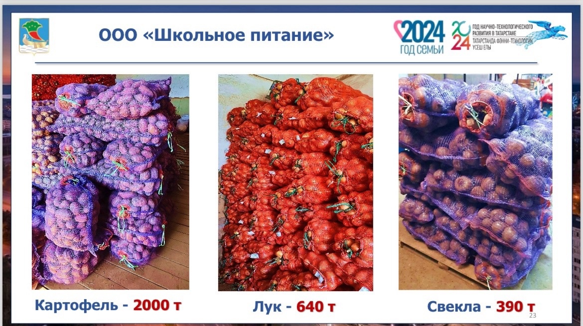 Также отмечены местные поставщики овощей, заключившие договор на поставку картофеля на комбинат «Школьное питание» и магазины города: сельскохозяйственный потребительский кооператив «Единство» под руководством Минталипа Минеханова на 355 гектарах посевных площадей вырастил картофель, свеклу, морковь в объеме более 4 510 тонн. Сельскохозяйственный производственный кооператив «Шильна», возглавляемый Алмазом Юсуповым, имеет картофелехранилище объемом на 4 тыс. тонн.