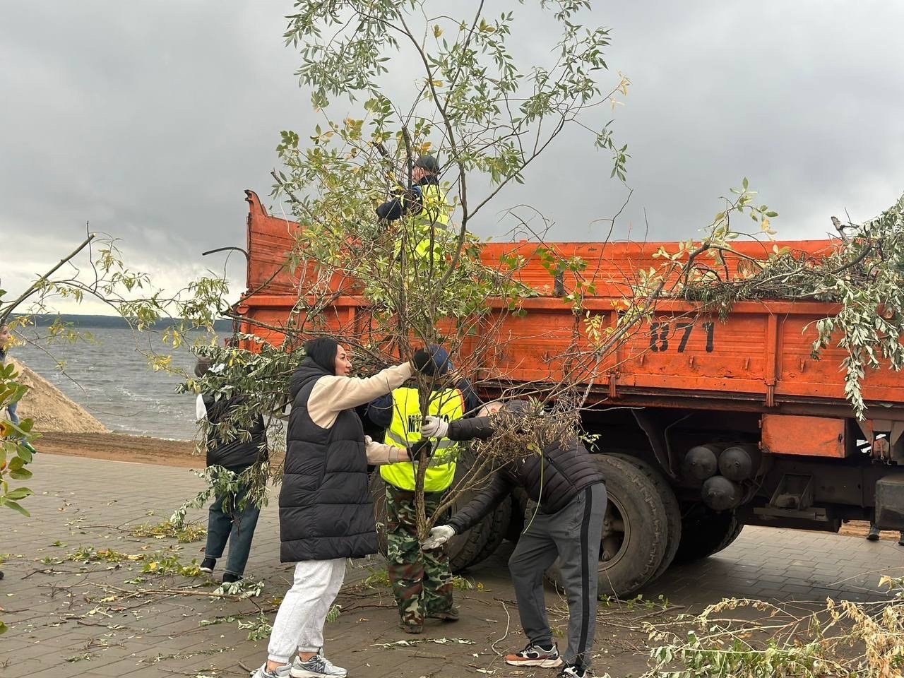 уборка территории на набережной Тукая и реки Мелекеска.