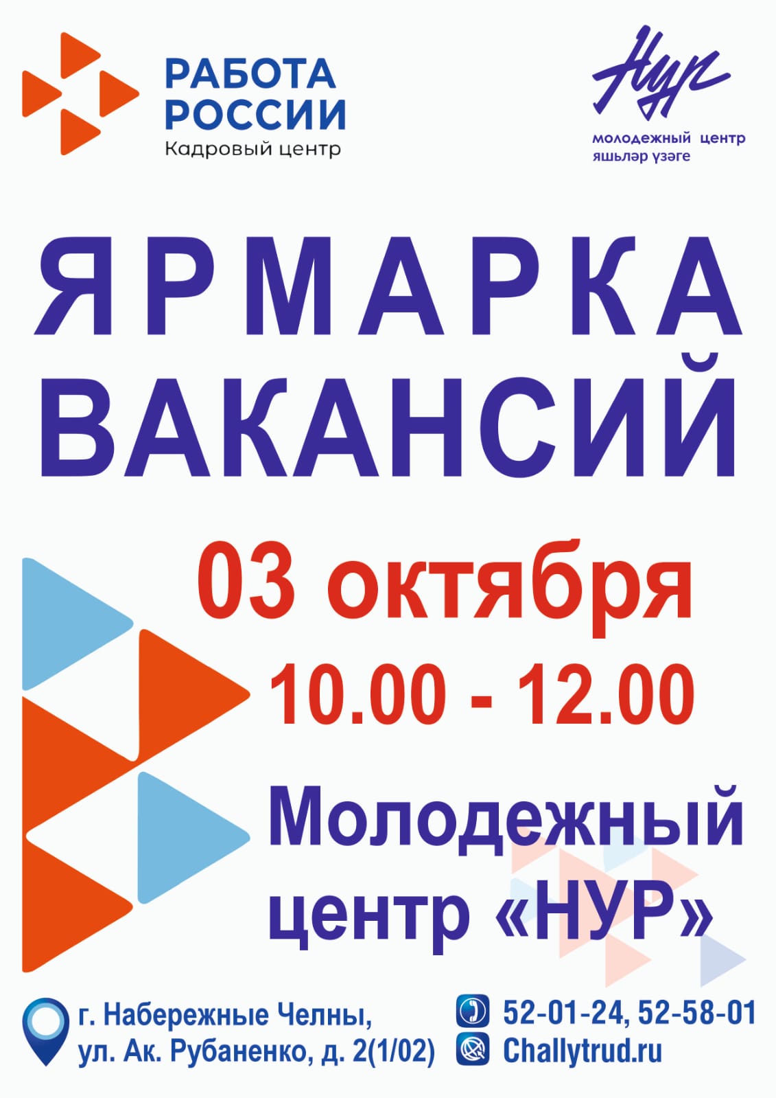 3 октября кадровый центр «Работа России» проводит ярмарку вакансий в Набережных Челнах.