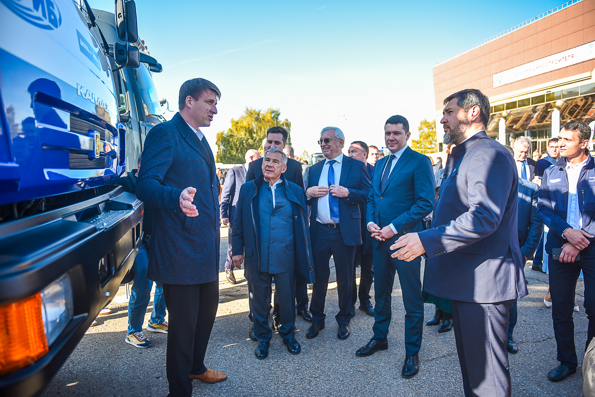 Сегодня в Набережные Челны в честь празднования Дня машиностроителя с рабочим визитом прибыли министр промышленности и торговли Российской Федерации Антон Алиханов и Раис Республики Татарстан Рустам Минниханов.