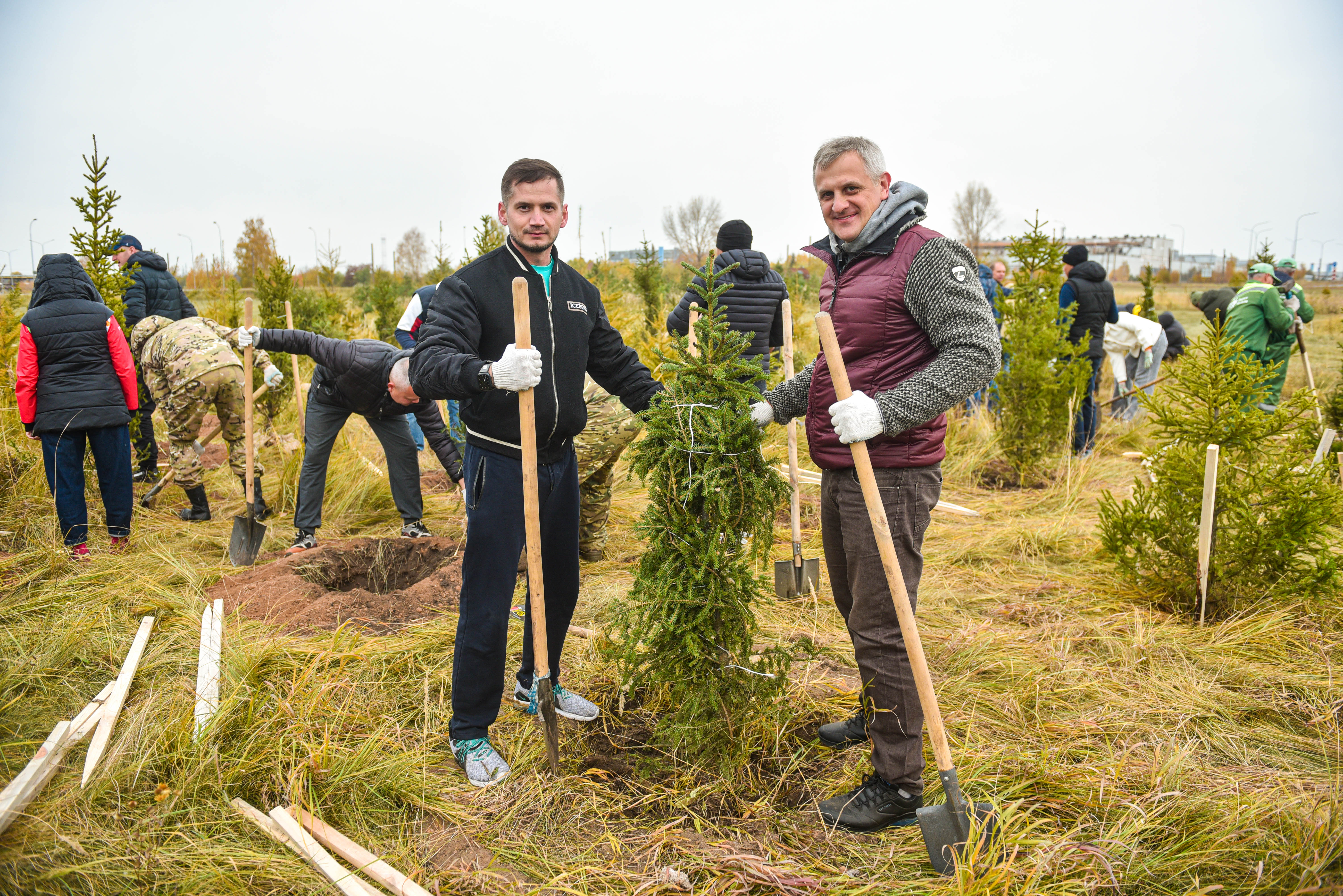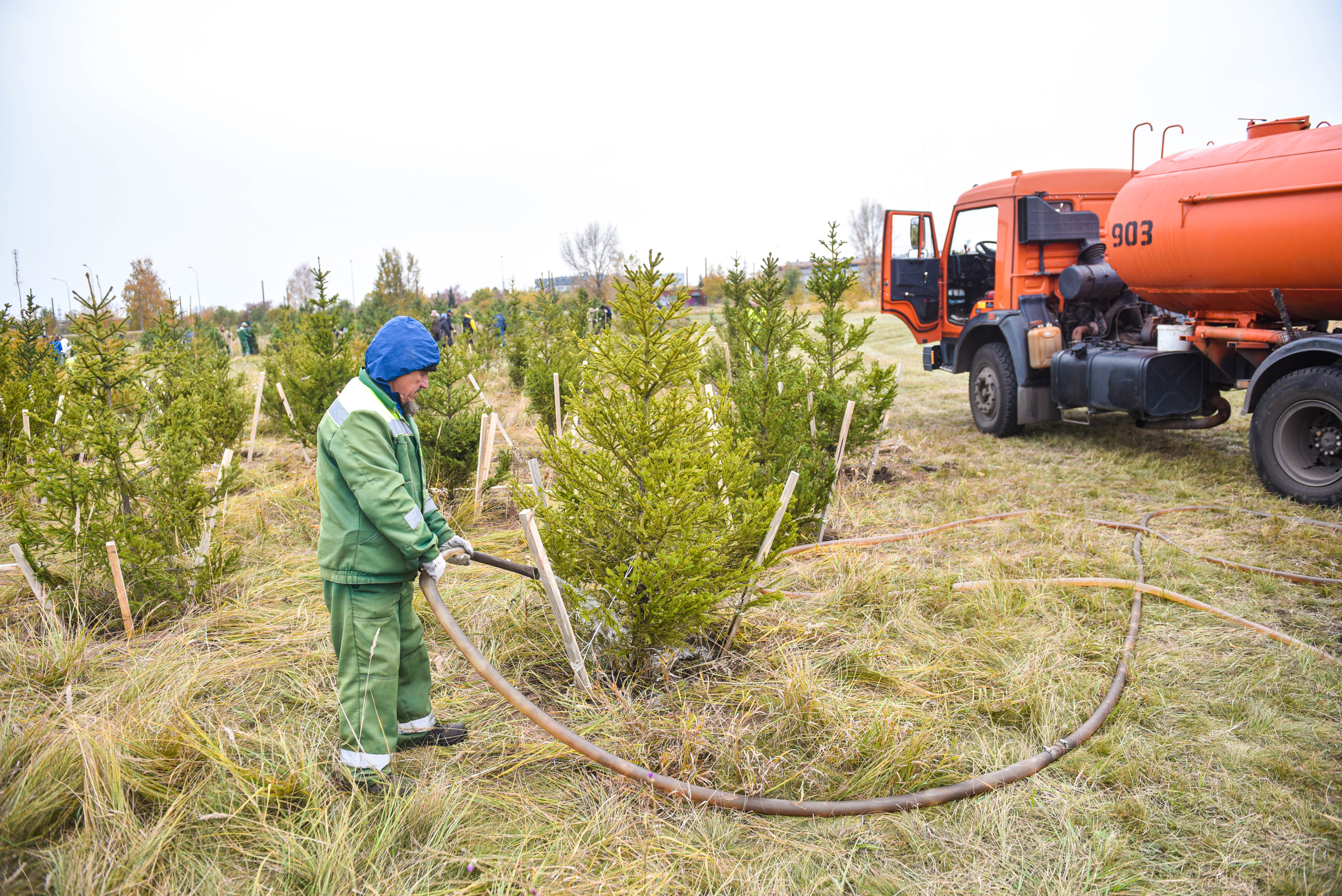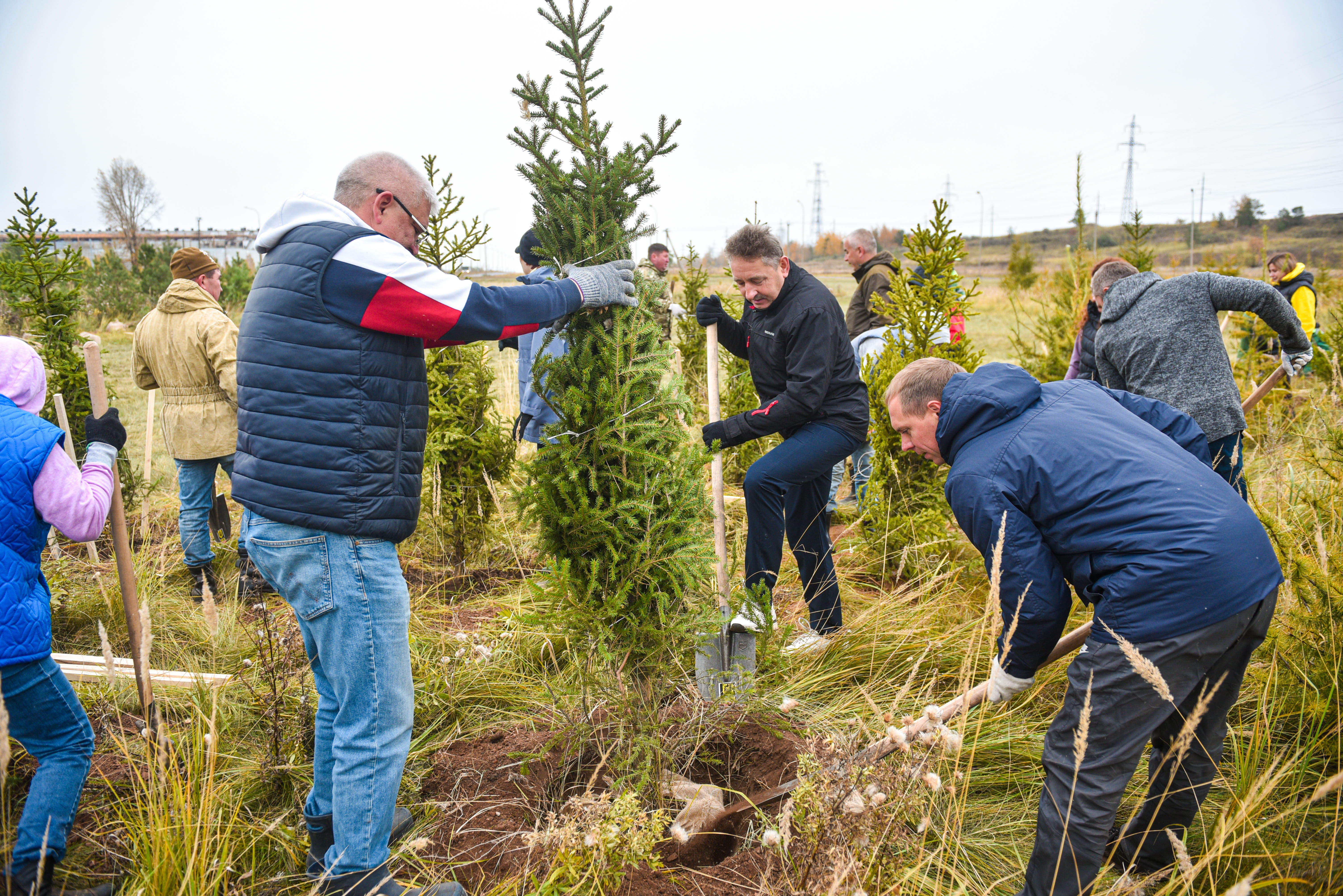 Сегодня мэр города Наиль Магдеев вместе со своей командой высадил 250 деревьев – 150 елей и 100 сосен. Деревья появились на кольце возле ТЭЦ.